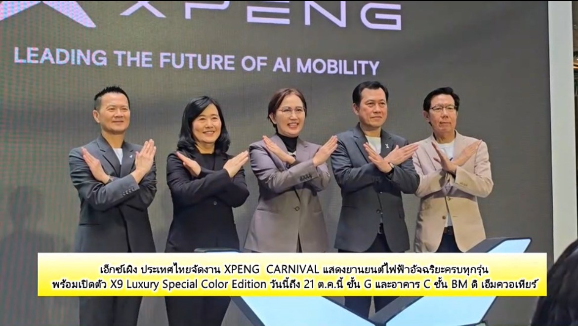 เอ็กซ์เผิง ประเทศไทย ผู้นำเข้าและจัดจำหน่ายยานยนต์ไฟฟ้าอัจฉริยะระดับพรีเมียม-ไฮเทค ‘เอ็กซ์เผิง’ ภายใต้บริษัท มิลเลนเนียม กรุ๊ป คอร์ปอเรชั่น (เอเชีย) จำกัด (มหาชน) หรือ MGC-ASIAจัดงานสุดปัง ‘XPENG CARNIVAL’ ผสมผสานระหว่างบรรยากาศงานเทศกาลคาร์นิวัล กับยานยนต์ไฟฟ้าอัจฉริยะระดับพรีเมียม-ไฮเทค พร้อมเปิดตัวรถตู้ไฟฟ้าทรงสปอร์ตอัจฉริยะรุ่นพิเศษ ‘X9 Luxury Special Color Edition’ สะท้อนความหรูหราขั้นสุด พลาดไม่ได้รถผู้บริหารป้ายแดง ที่มีให้เลือกสรรพร้อมรับข้อเสนอจุใจ ระหว่างวันที่ 15-21 ตุลาคม 2568 ณ ศูนย์การค้า ดิ เอ็มควอเทียร์