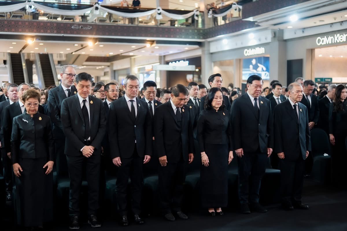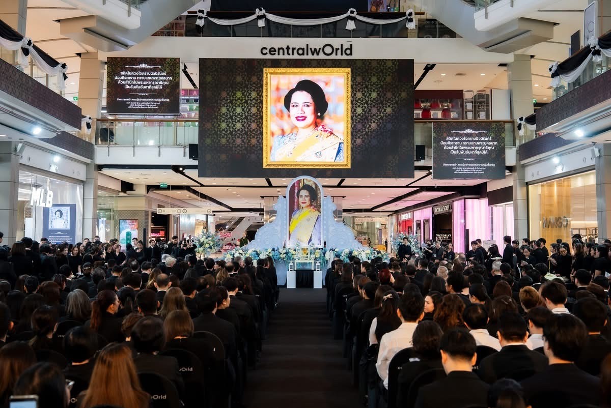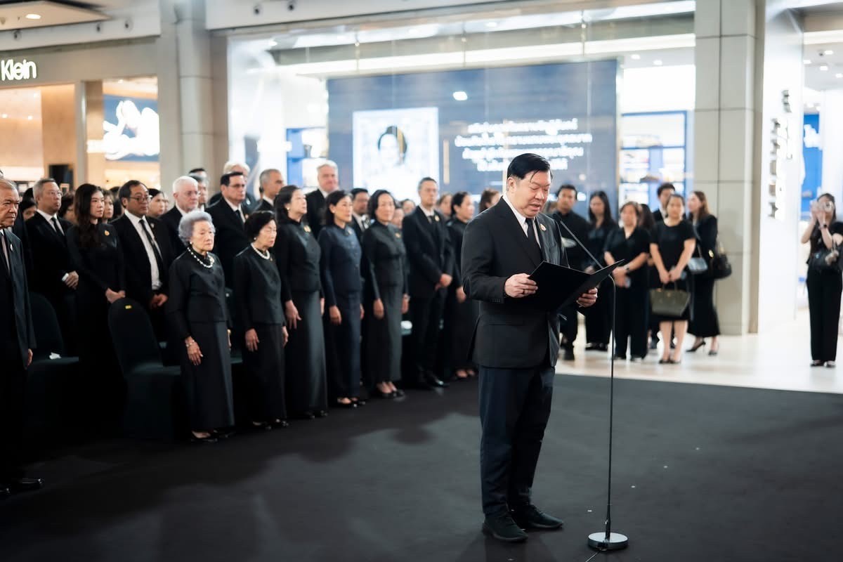 พิธีถวายความอาลัยจัดขึ้น ณ ลานอีเดน ชั้น 1 ศูนย์การค้าเซ็นทรัลเวิลด์ โดยมี คุณมุกดา จิราธิวัฒน์ เป็นประธานในพิธี พร้อมด้วย ดร.ศุภชัย พานิชภักดิ์ และ คุณพิชัย จิราธิวัฒน์ ร่วมประกอบพิธีน้อมถวายความอาลัย และเชิญผู้เข้าร่วมพิธียืนสงบนิ่งเป็นเวลา 93 วินาที เพื่อรำลึกในพระมหากรุณาธิคุณอันหาที่สุดมิได้