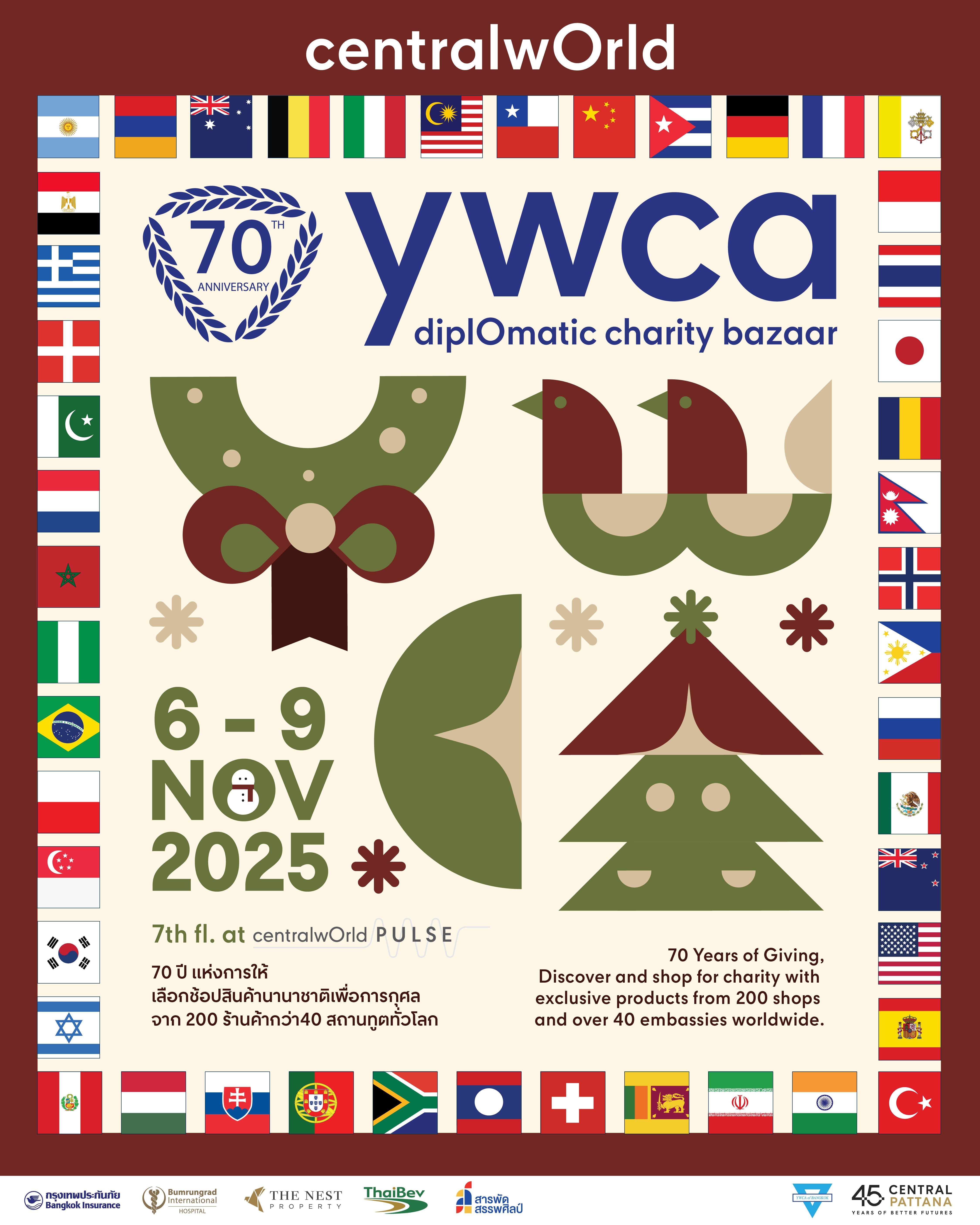 Visit the 70th YWCA diplOmatic Charity Bazaar from 6-9 November 2025 on the 7th floor, centralwOrld Pulse. To follow the latest news and updates from Central Pattana.Please visit: https://www.centralpattana.co.th/th/shopping/shopping-update/lifestyle-activities
