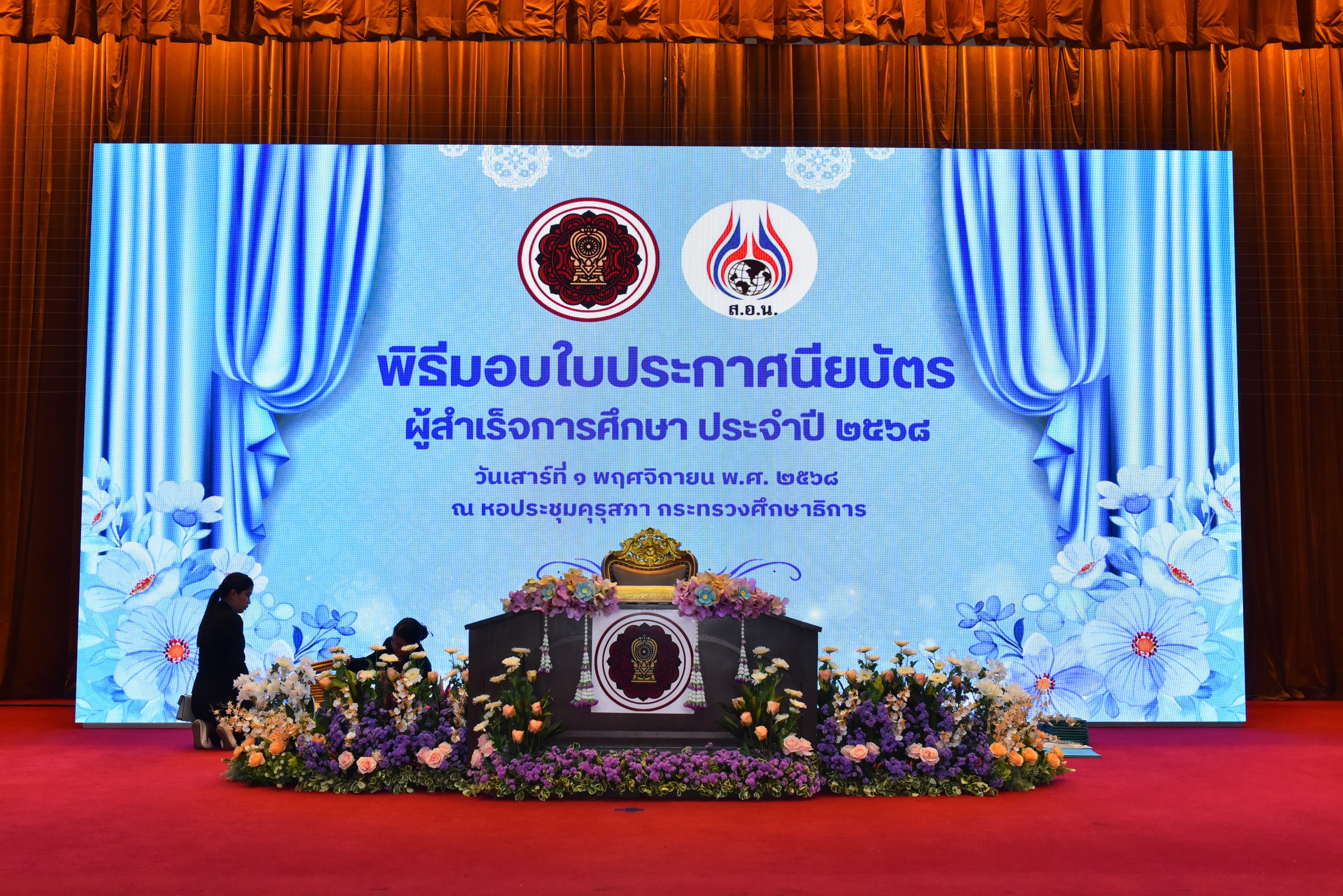 วันเสาร์ที่ 1 พฤศจิกายน พ.ศ. 2568 สำนักงานคณะกรรมการส่งเสริมการศึกษาเอกชน (สช.) จัดพิธีมอบรางวัลนักเรียนดีเด่น และพิธีมอบใบประกาศนียบัตรผู้สำเร็จการศึกษา ประจำปีการศึกษา 2568 ณ หอประชุมคุรุสภา กระทรวงศึกษาธิการ เพื่อยกย่องเชิดชูเกียรติและส่งเสริมให้นักเรียน นักศึกษา รวมถึงผู้สำเร็จการศึกษาที่มีความประพฤติและผลการเรียนดี ได้รับเกียรติในฐานะแบบอย่างที่ดีของสังคม