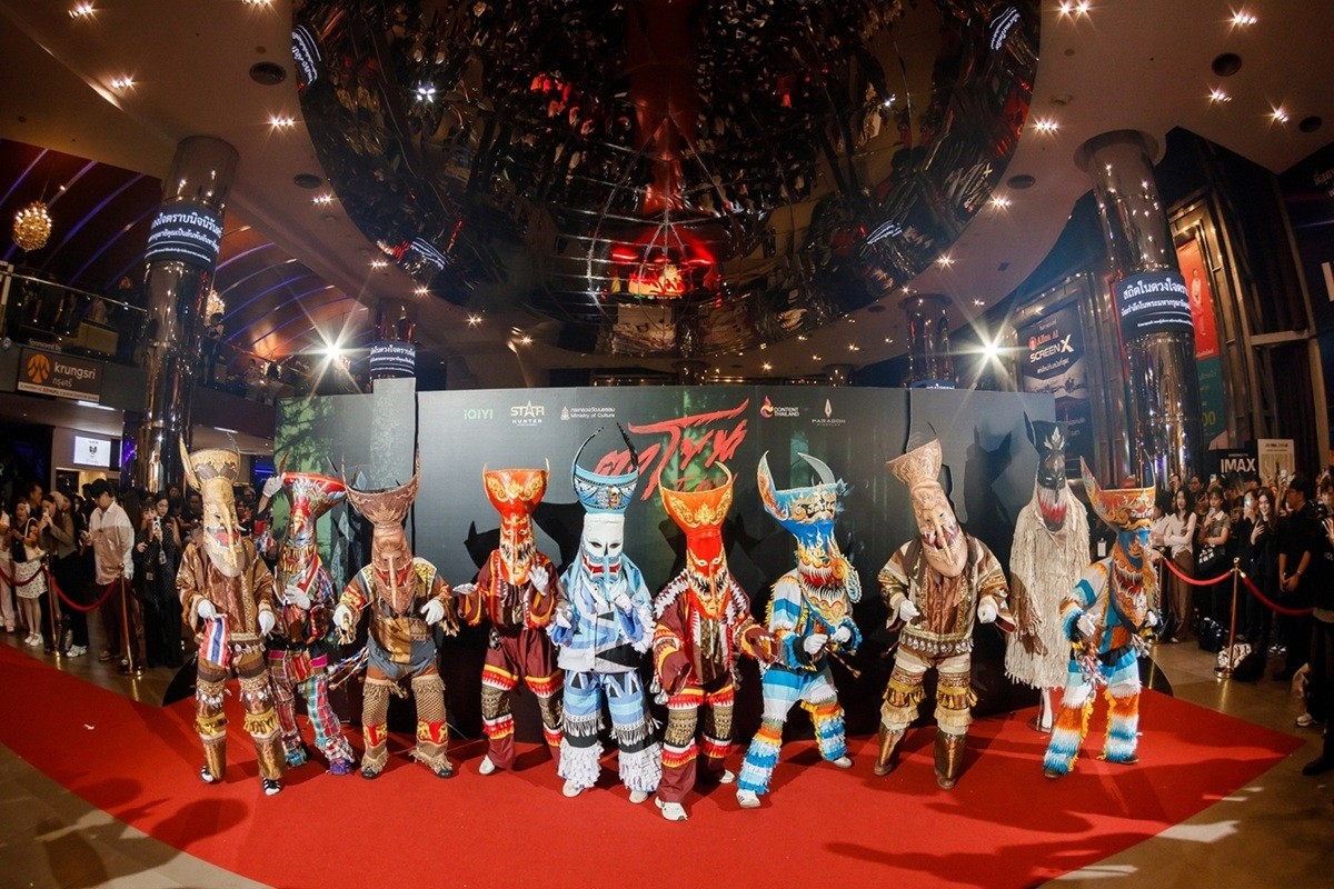 สร้างปรากฏการณ์ความขลังพรมแดง! ภาพยนตร์ไทยฟอร์มยักษ์ “ตาโขน The Cursed Mask” เมื่อ STAR HUNTER ENTERTAINMENT จับมือกับแพลตฟอร์มวิดีโอออนไลน์ระดับแนวหน้า iQIYI (อ้ายฉีอี้) พร้อมได้รับการสนับสนุน จาก กระทรวงวัฒนธรรม และ CONTENT THAILAND จัดงานรอบ GALA PREMIERE อย่างยิ่งใหญ่ ท่ามกลางสื่อมวลชนและแฟนภาพยนตร์ที่เข้าร่วมงานอย่างเนืองแน่น ได้สร้างความประทับใจให้แก่วงการภาพยนตร์ไทยอย่างงดงาม เต็มไปด้วยมนต์เสน่ห์และพลังแห่งความเชื่อ กับไฮไลต์เปิดงานสุดตระการตา “ขบวนแห่ผีตาโขนจากอำเภอด่านซ้าย จังหวัดเลย” ที่เดินทางมาร่วมสร้างสีสันเฉพาะถิ่น ถ่ายทอดความศรัทธาและอัตลักษณ์วัฒนธรรมไทยอย่างทรงคุณค่า เรียกเสียงฮือฮาและสายตาที่จับจ้องทั่วทั้งฮอลล์ เป็นการต้อนรับผู้ชมเข้าสู่โลก ของตำนานต้องห้ามอย่างสมบูรณ์แบบ คับคั่งด้วยกองทัพดารานักแสดงจากหลากหลายค่ายบันเทิงมาร่วมเดินพรมแดง อาทิ Star Hunter Entertainment, iQIYI, Mojo Muse Management, Moonlight Glow, Bibbidii Entertainment, NINJA PERFECTION, E-intent, HeartPop Studio, House of Halo, Mister Khonkaen 2025, BoyFriend Project, ออฟฟิศชายแท้ +, ทีมนักแสดง “LOVE LIKE A BIKE ปั่นไปให้ถึงรัก” พร้อมด้วย 3 หนุ่ม SBFIVE เต้-ตี๋-คิมม่อน, โม อมีนา พินิจ, โยชิ รินรดา ธุระพันธ์, ร็อค ขวัญลดา รุ่งโรจน์อำภา, บิ๊นท์ สิรีธร ลีห์อร่ามวัฒน์, ปุยนุ่น วรางค์ศิริ ธนจรัสวรภัทร์, แอนนา เสืองามเอี่ยม, อิน บูโดกัน, คิวคิว คณิศา, มิลล่า มาริษา ชุติภาวรกานต์, น้องหลินท่าขอนยางและพี่เบนซ์, เจมส์ หนังหน้าโรง, แบงค์ อนุสิทธิ แสงนิ่มนวล, โบนัส ณัฐวัฒน์ เอี่ยมชื่น, มิว ศุภศิษฏ์ จงชีวีวัฒน์, แบงค์กี้ มณฑป เหมตาล, รัศมีแข ฟ้าเกื้อล้น, ต้นหอม ศกุนตลา เทียนไพโรจน์ และ เอ ศุภชัย ศรีวิจิตร เป็นต้น
