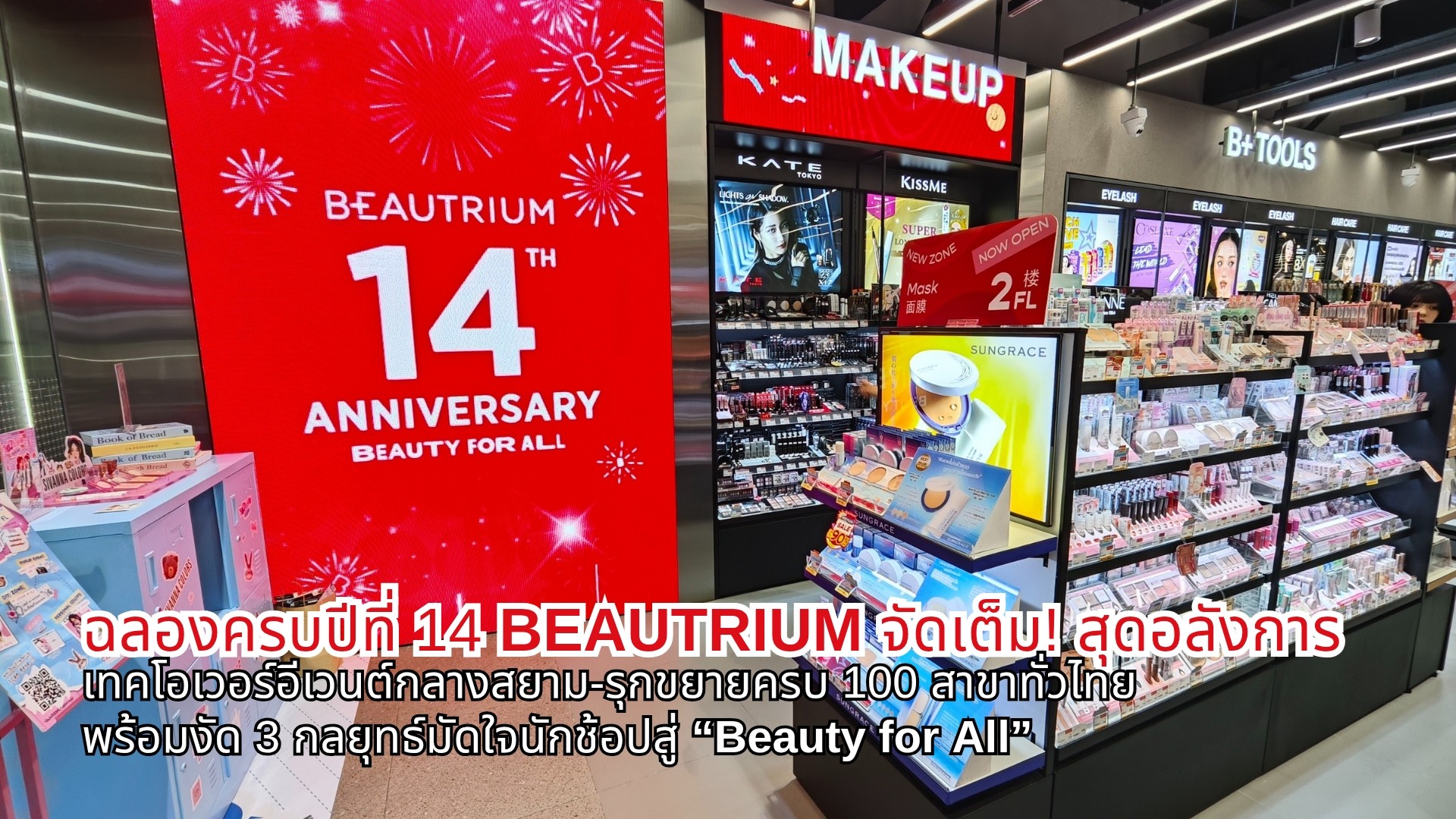 บริษัท บิวเทรี่ยม จำกัด หรือ BEAUTRIUM ร้านบิวตี้มัลติแบรนด์ชั้นนำประเทศไทย จัดงาน “BEAUTRIUM 14th ANNIVERSARY: Beauty for All” เฉลิมฉลองก้าวสู่ปีที่ 15 อย่างยิ่งใหญ่ ด้วยการยกทัพเหล่าศิลปิน-ดารา-เซเลบ-คนดัง-อินฟลูเอนเซอร์-พรีเซ็นเตอร์แบรนด์มาจัดเต็มมอบความสุข จัดเต็มกับกิจกรรมความสนุก, บูธกิจกรรมจากแบรนด์ดัง, ดีลโปรโมชั่นสุดพิเศษ พร้อมสนุกสุดเหวี่ยงไปกับฟรีคอนเสิร์ตสุดฟินจากเหล่าศิลปินดัง T-POP พร้อมกันนี้ ยังประกาศเดินหน้ารุกขยายครบ 100 สาขาครอบคลุมทั่วไทยภายในสิ้นปี 2568 โดยงัด 3 กลยุทธ์เด็ด เพื่อผลักดันให้ BEAUTRIUM ก้าวไปข้างหน้าอย่างไม่หยุดยั้งและพลิกโฉมจากเดิมสู่การเป็น “Beauty for All” หรือ “พื้นที่ที่ทุกคนอยากแวะมาสำรวจความสวยครั้งใหม่” ทุกครั้งที่แวะมา