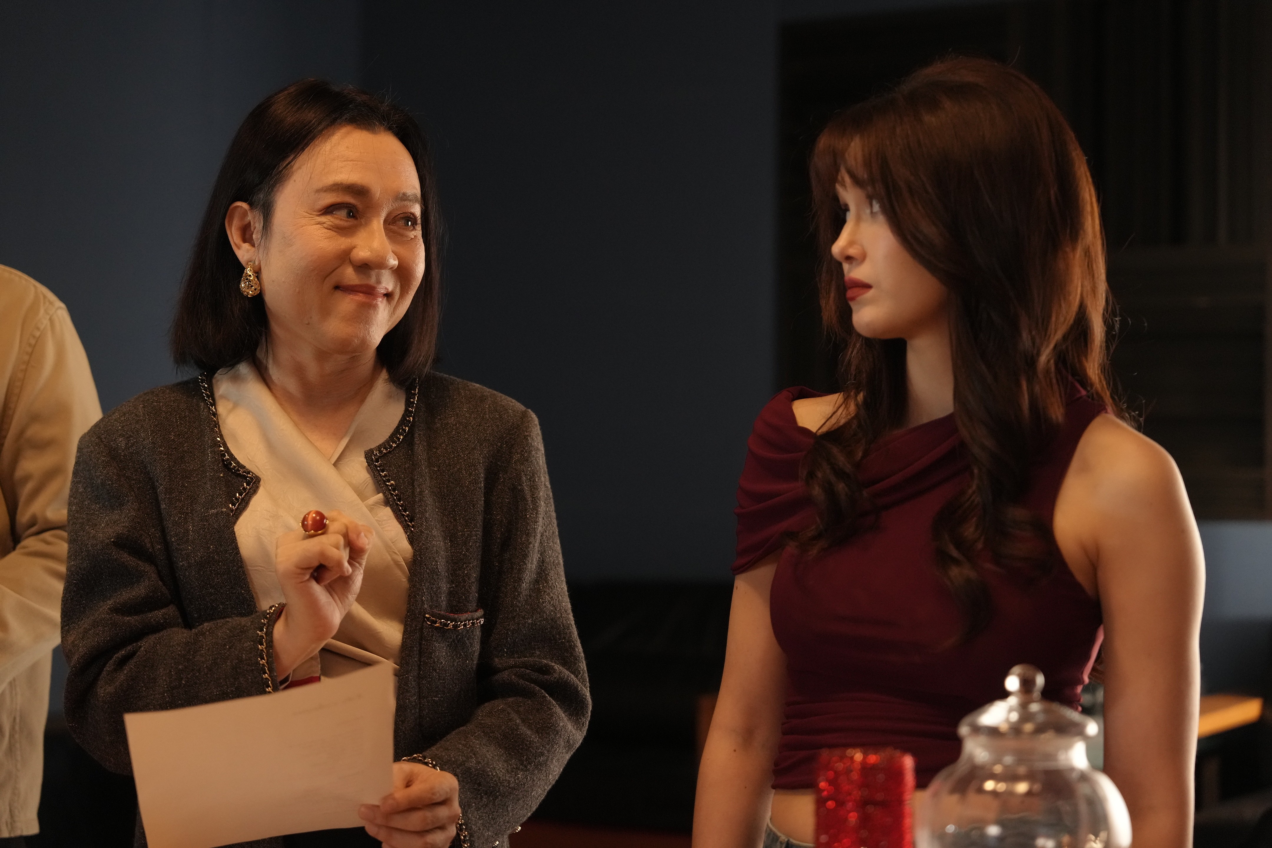 “สำหรับการร่วมงานกับแจ็คกี้ เจ้าของบท ปลายฝัน ที่ต้องอยู่ด้วยกันแทบทั้งเรื่อง ปลื้มใจที่ แจ็คกี้ บอกว่ารู้สึกเหมือนเราเป็นเพื่อนสาวจริง ๆ ถือเป็นคำชมที่ดีที่สุดเลยครับ ที่แจ็คกี้เข้าถึงความเป็นป้ากบ และให้ความไว้วางใจ เพราะเรื่องนี้เราทั้งคู่ต้องเป็นบัดดี้ ความสัมพันธ์ของคู่นี้เป็นเหมือนแม่, พี่สาว, เพื่อนสนิท และที่ปรึกษาใจ อยู่เคียงข้างในทุกเหตุการณ์ คอยดูแล คอยตบตีเวลางอแง ด้วยความที่ต้องเข้าฉากด้วยกันบ่อย ๆ ก็พยายามหาวิธีทำลายกำแพงระหว่างกัน ทำให้การทำงานลื่นไหลมาก