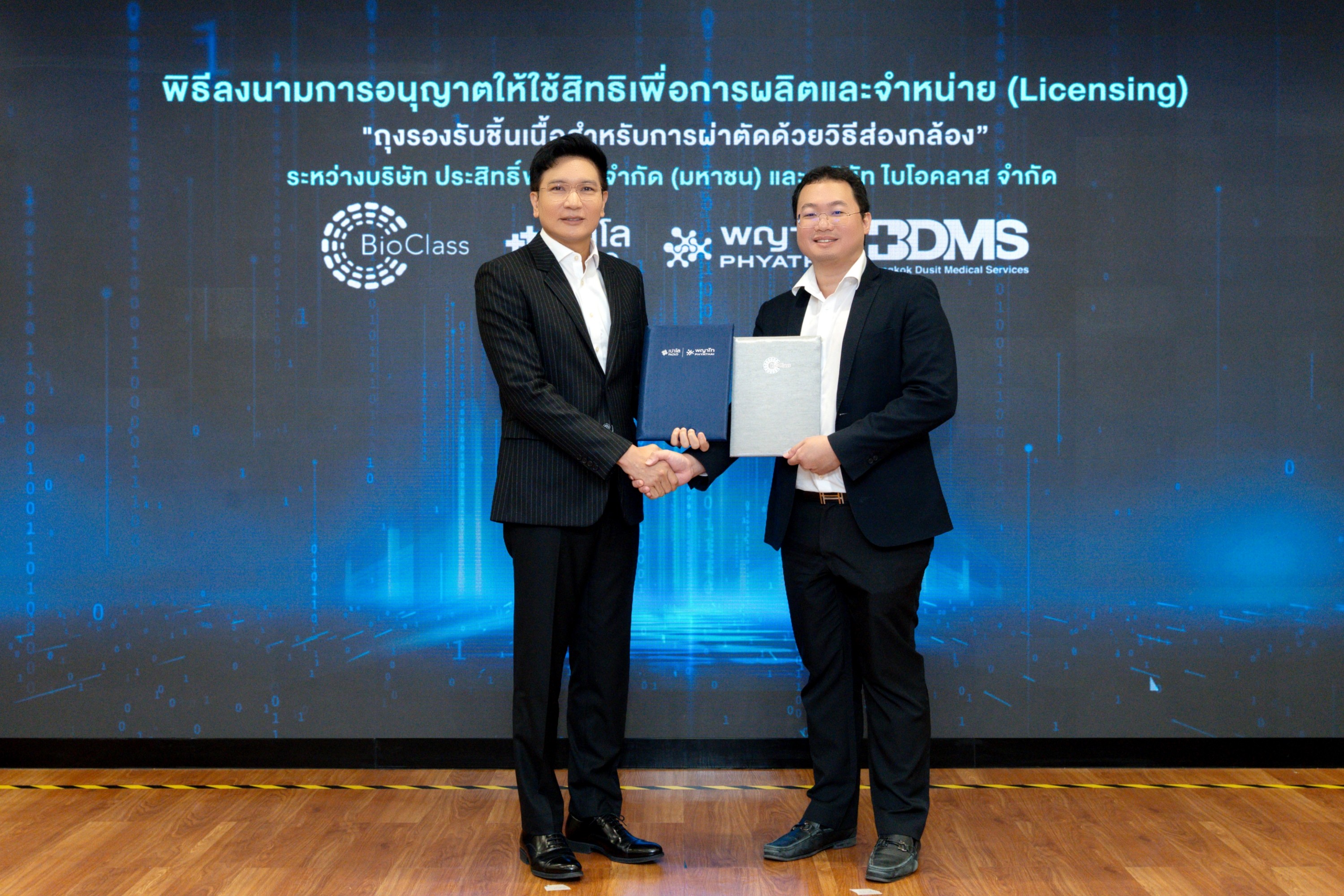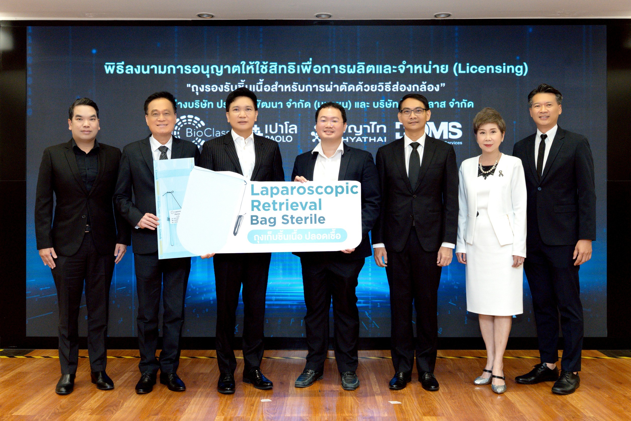 บริษัท ไบโอคลาส จำกัด ร่วมกับเครือโรงพยาบาลพญาไท-เปาโล เดินหน้าผลักดันนวัตกรรมทางการแพทย์ของไทยสู่การใช้งานจริงอย่างเป็นรูปธรรม ด้วยการลงนามข้อตกลงร่วมกันในการอนุญาตสิทธิ์สำหรับการผลิตและจำหน่าย (Licensing) นวัตกรรมถุงรองรับชิ้นเนื้อสำหรับการผ่าตัดด้วยวิธีส่องกล้อง หรือ Laparoscopic Retrieval Bag Sterile VP: OR BAG เพื่อยกระดับมาตรฐานความปลอดภัยในการผ่าตัดผ่านกล้อง และขยายการเข้าถึงอุปกรณ์คุณภาพระดับสากลสู่โรงพยาบาลทั่วประเทศ โดยพิธีลงนามข้อตกลงร่วมกันในครั้งนี้จัดขึ้น ณ โรงพยาบาลพญาไท 2 สนามเป้า ถนนพหลโยธิน เขตพญาไท กรุงเทพมหานคร ซึ่งคุณอัฐ ทองแตง ประธานเจ้าหน้าที่บริหาร เครือโรงพยาบาลพญาไท-เปาโล และคุณภาสวร วรวิวรรธน์ ประธานเจ้าหน้าที่บริหาร บริษัท ไบโอคลาส จำกัด ได้ร่วมพิธีลงนามข้อตกลงความร่วมมือครั้งสำคัญนี้
