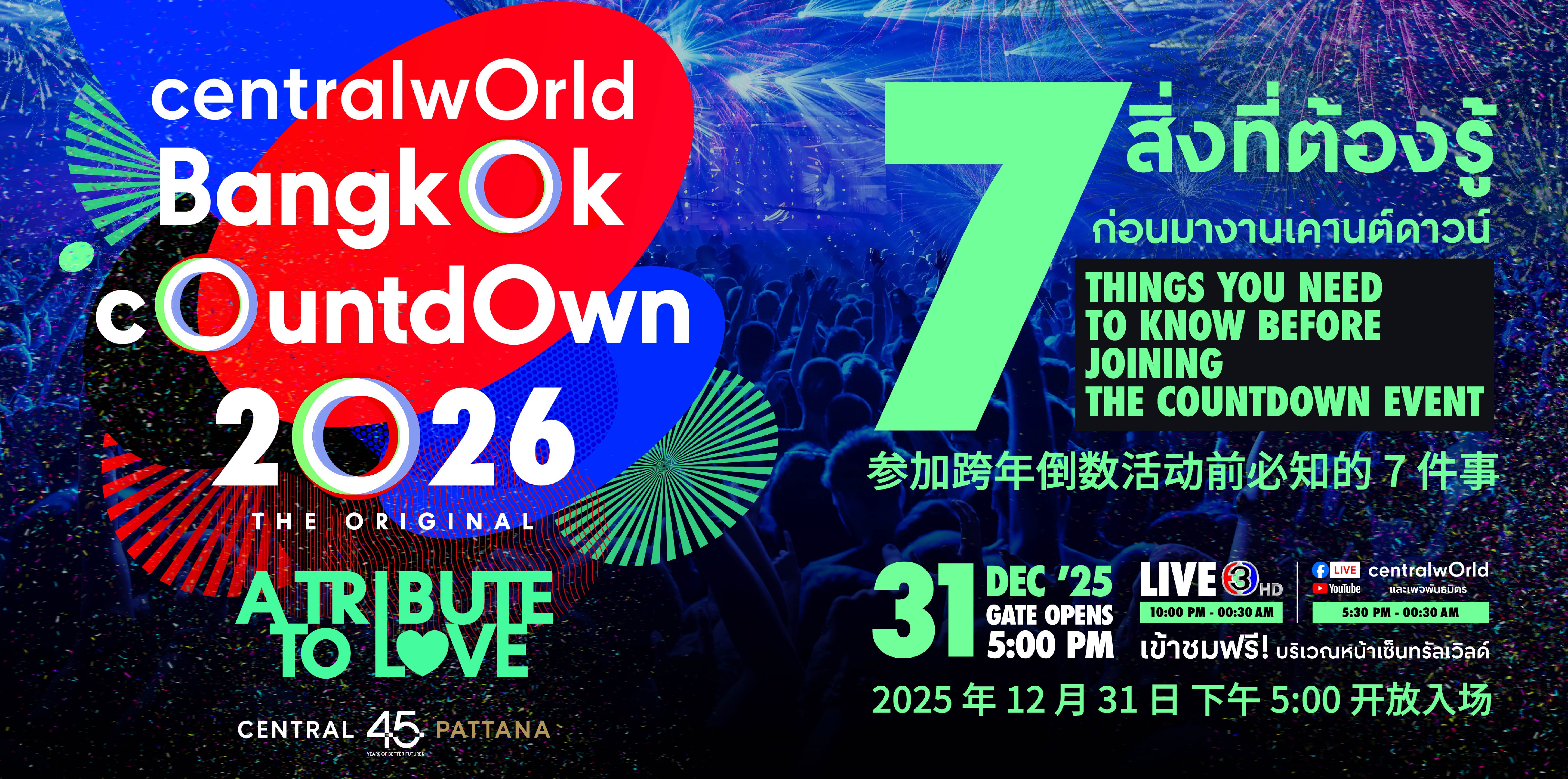 มัดรวม 7 สิ่งต้องรู้ก่อนมามันส์ข้ามปีกับ “centralwOrld Bangkok Countdown 2026”