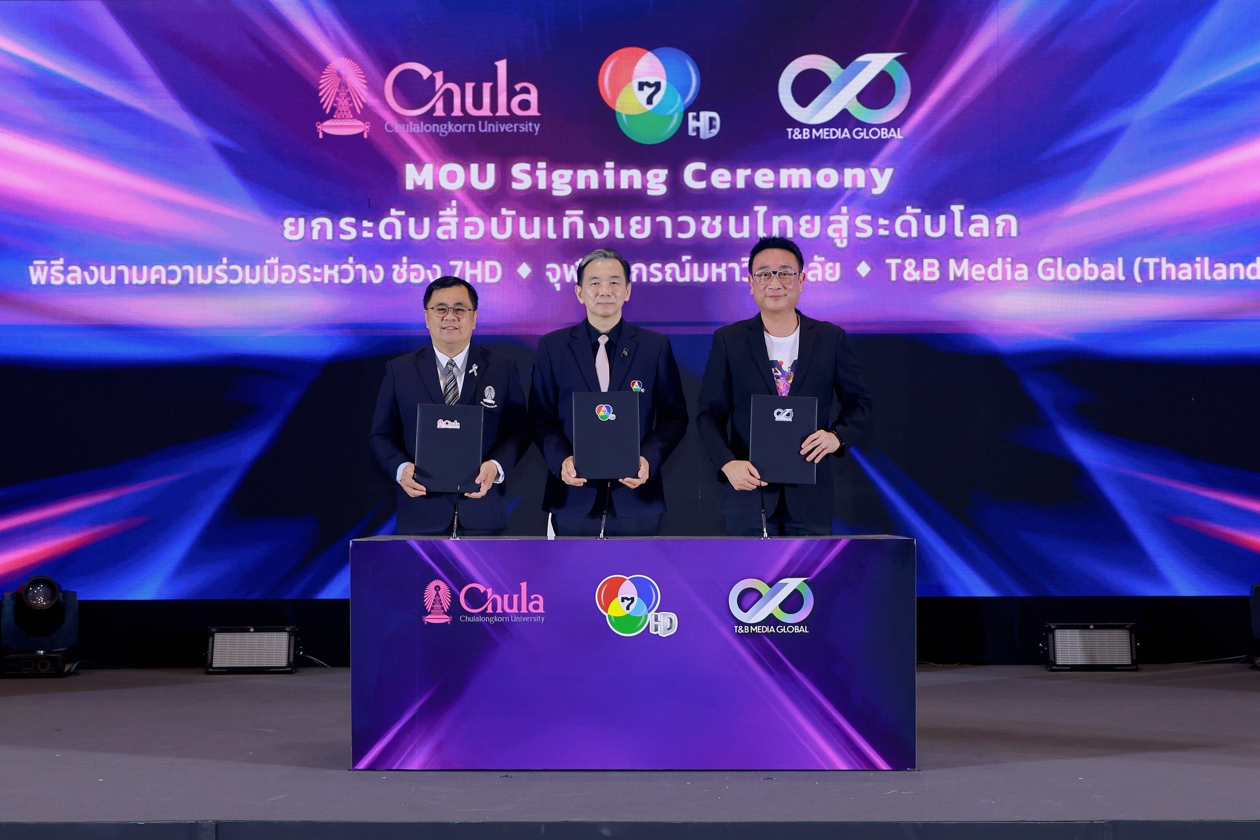 การร่วมมือครั้งสำคัญระหว่าง ช่อง 7HD ผู้นำด้านสื่อโทรทัศน์ ร่วมกับ บริษัท ที แอนด์ บี มีเดีย โกลบอล (ประเทศไทย) จำกัด ผู้นำด้านการพัฒนา IP และ จุฬาลงกรณ์มหาวิทยาลัย สถาบันการศึกษาชั้นนำของประเทศ ลงนามบันทึกข้อตกลงความร่วมมืออย่างเป็นทางการ ในงาน MOU Signing Ceremony ยกระดับสื่อบันเทิงเยาวชนไทยสู่ระดับโลก พิธีลงนามความร่วมมือ ระหว่าง ช่อง 7HD – จุฬาลงกรณ์มหาวิทยาลัย - T&B Media Global (Thailand) ณ สุราลัย ฮอลล์ ชั้น 7 ไอคอนสยาม เมื่อวันพฤหัสบดีที่ 22 มกราคม 2569