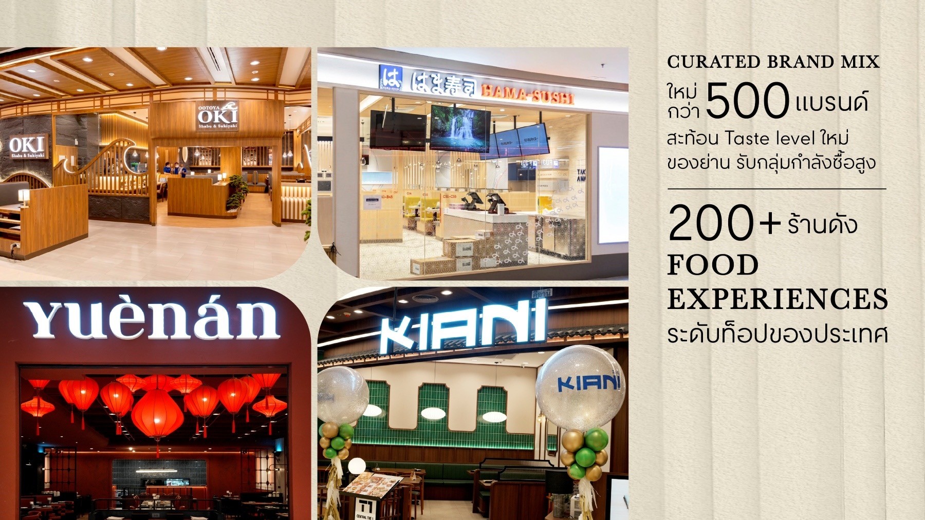• Image shift on every floor, with a curated brand mix of over 500 brands, led by Central Group’s renowned brands, which have been completely revamped for next gen retail, including Central Department Store, Tops Food Hall, B2S, Power Buy and Supersports