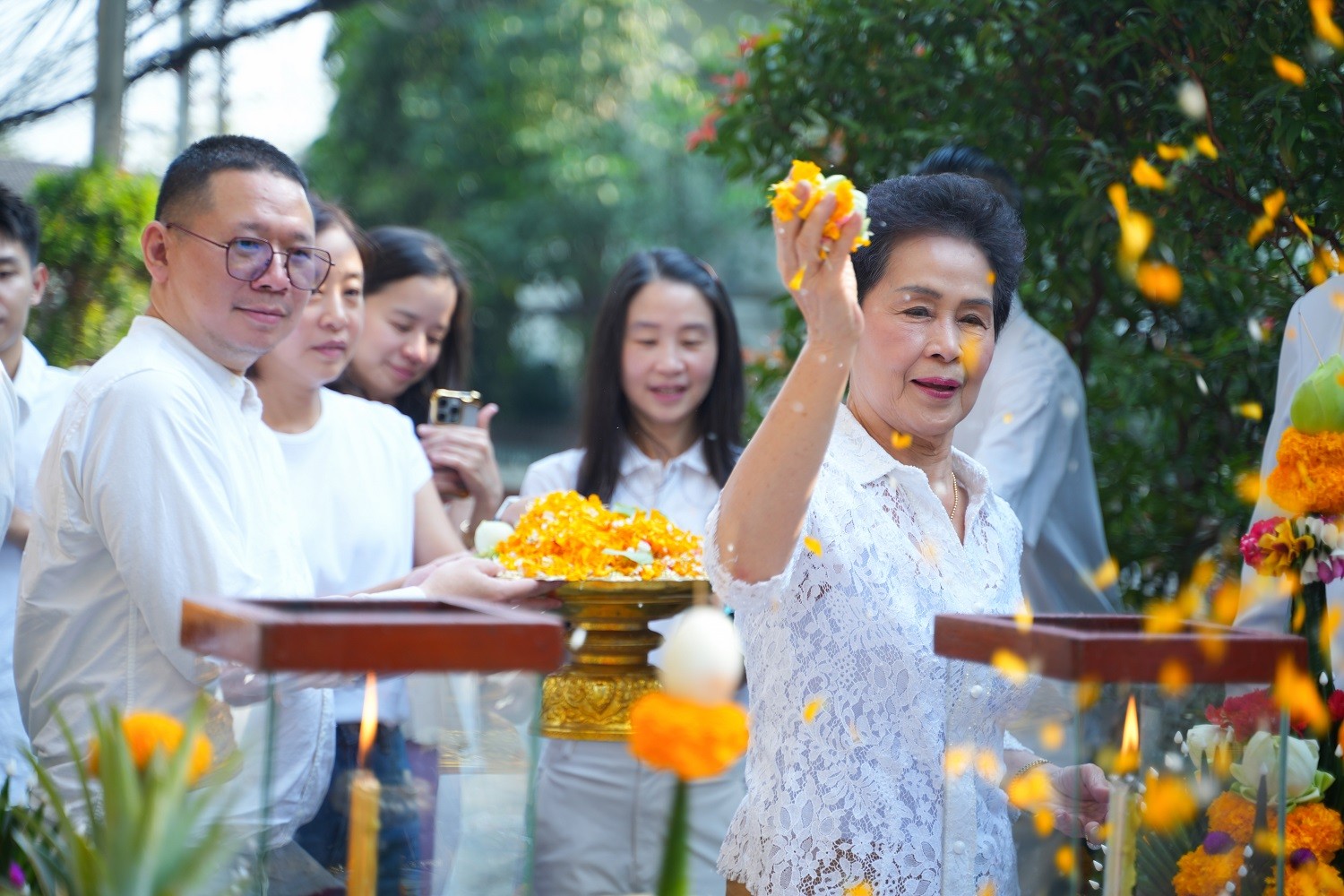 การตลาด, “คุณจาตุศม เตชะรัตนประเสริฐ” รองประธานกรรมการฝ่ายสื่อสารการตลาด และโปรดิวเซอร์ภาพยนตร์, “คุณชมศจี เตชะรัตนประเสริฐ” รองประธานกรรมการฝ่ายขาย, “มะเดี่ยว-ชูเกียรติ ศักดิ์วีระกุล” โปรดิวเซอร์ภาพยนตร์, “นัทสอ สรวิชญ์ - ตู้ อัศฎา” คู่หูผู้กำกับน่าจับตา พร้อมด้วยทีมนักแสดงมากความสามารถอย่าง “เจนิส-เจณิสตา พรหมผดุงชีพ”, “ท็อป-ทศพล หมายสุข”, “มาด-สามารถ พยัคฆ์อรุณ”, “น้ำตาล-พิจักขณา วงศารัตนศิลป์” และ “กาฟิวส์-พันธุ์ธัช กันคำ” รวมถึงทีมงานภาพยนตร์ที่เข้าร่วมพิธีกันอย่างพร้อมเพรียง