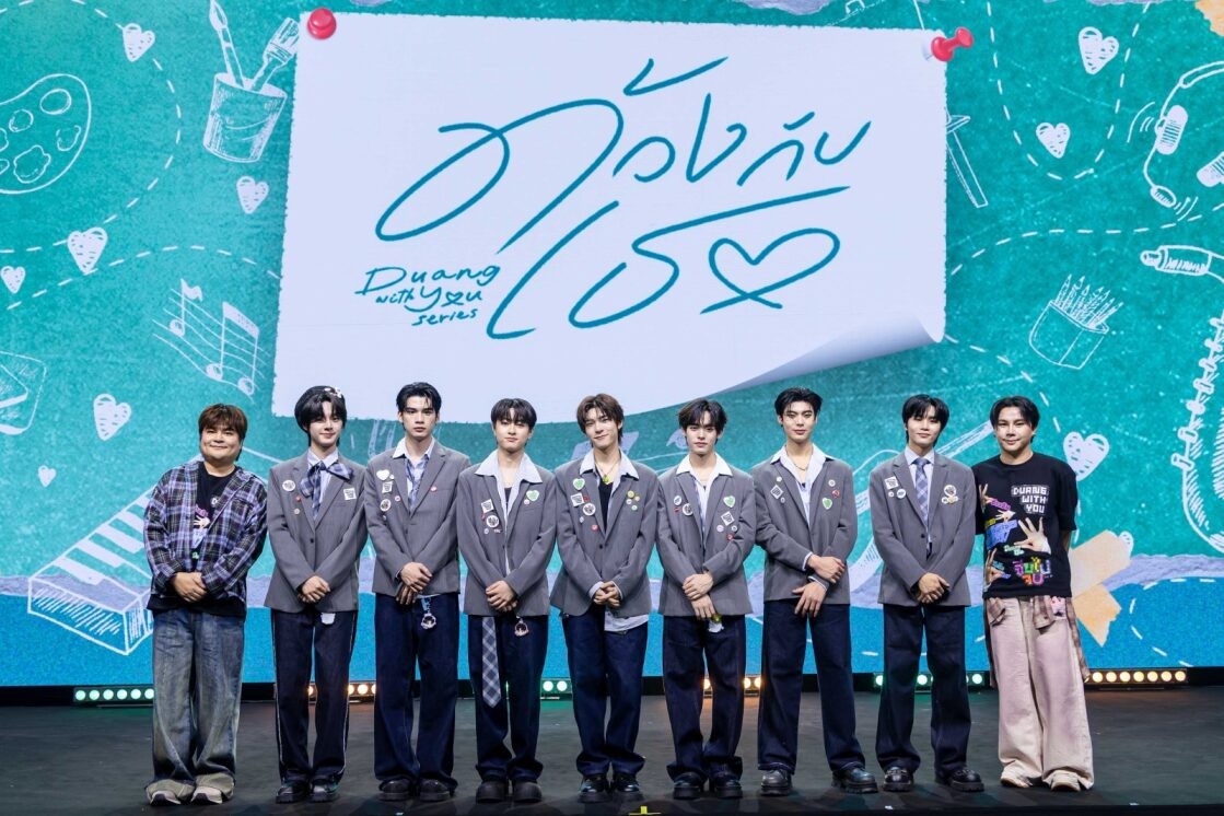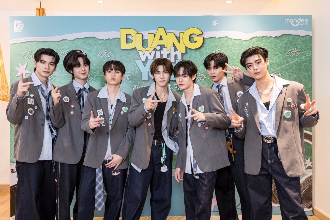 และความพิเศษกับทัพหนุ่ม ๆ จากค่าย ‘ดูมันดิ’ ที่มาร่วมสร้างสีสันภายในงาน Press Conference ให้กับซีรีส์เรื่อง ‘ด้วงกับเธอ Duang With You Series’ พร้อมยกกำลังใจมาให้ทีมนักแสดง ทั้ง ‘ติวเตอร์ กรภัทร์ ลำน้อย, ยิม ปริญญากรณ์ ขันสวะ, ลาเต้ ธนรรถชล จันทร์เเก้วอมร, คิม พงศธร สิทธิพันธุ์, เจ็ม กันตพัฒน์ เตวิชพัฒนพงศ์, อู่อู๋ ธนภูมิ เศรษฐสิทธิกุล, แพท จิรชาติ บุษปวนิช, ริวจิน ทินภัทร ทัศนีย์ไตรเทพ, ปัง พิรุฬห์วัตน์ พรมรัตน์, พอร์ช ศิฑา กาญจนอลงกรณ์, ฟีฟ่า ธนัช โอสายไทย และ พีท ชณันวิชญ์ รุ่งสิริประเสริฐ มาร่วมงานเปิดตัวซีรีส์ในครั้งนี้ และมี ‘ป๊อบปี้ รัชพงศ์ อโนมกิติ’ ทำหน้าที่พิธีกรภายในงาน