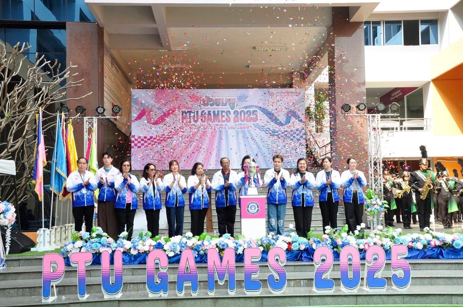 เมื่อวันเสาร์ที่ 31 มกราคม 2569 มหาวิทยาลัยปทุมธานี โดยฝ่ายส่งเสริมและพัฒนาศักยภาพนักศึกษา จัดพิธีเปิดการแข่งขันกีฬาภายในประจำปี “บัวชมพู PTU GAMES 2025” อย่างยิ่งใหญ่ เพื่อส่งเสริมการออกกำลังกาย เสริมสร้างสุขภาพที่แข็งแรง และปลูกฝังความมีน้ำใจนักกีฬา ความสามัคคี และการทำงานเป็นทีมให้แก่นักศึกษา