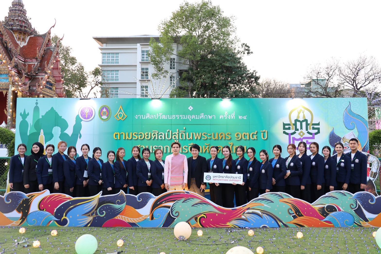 วันที่ 4 กุมภาพันธ์ 2569 เวลา 19.00 น. มหาวิทยาลัยปทุมธานี โดย ฝ่ายส่งเสริมและพัฒนาศักยภาพนักศึกษา นำนักศึกษาเข้าร่วมพิธีเปิดงาน ศิลปวัฒนธรรมอุดมศึกษา ครั้งที่ 24 ภายใต้แนวคิด “ตามรอยศิลป์สู่ถิ่นพระนคร 134 ปี ฐานรากการฝึกหัดครูไทย” โดยได้รับเกียรติจาก นางวัฒนาโสภี สุขสอาด ที่ปรึกษาด้านยุทธศาสตร์และแผนการอุดมศึกษา วิทยาศาสตร์ วิจัยและนวัตกรรม เป็นประธานในพิธี ณ มหาวิทยาลัยราชภัฏพระนคร