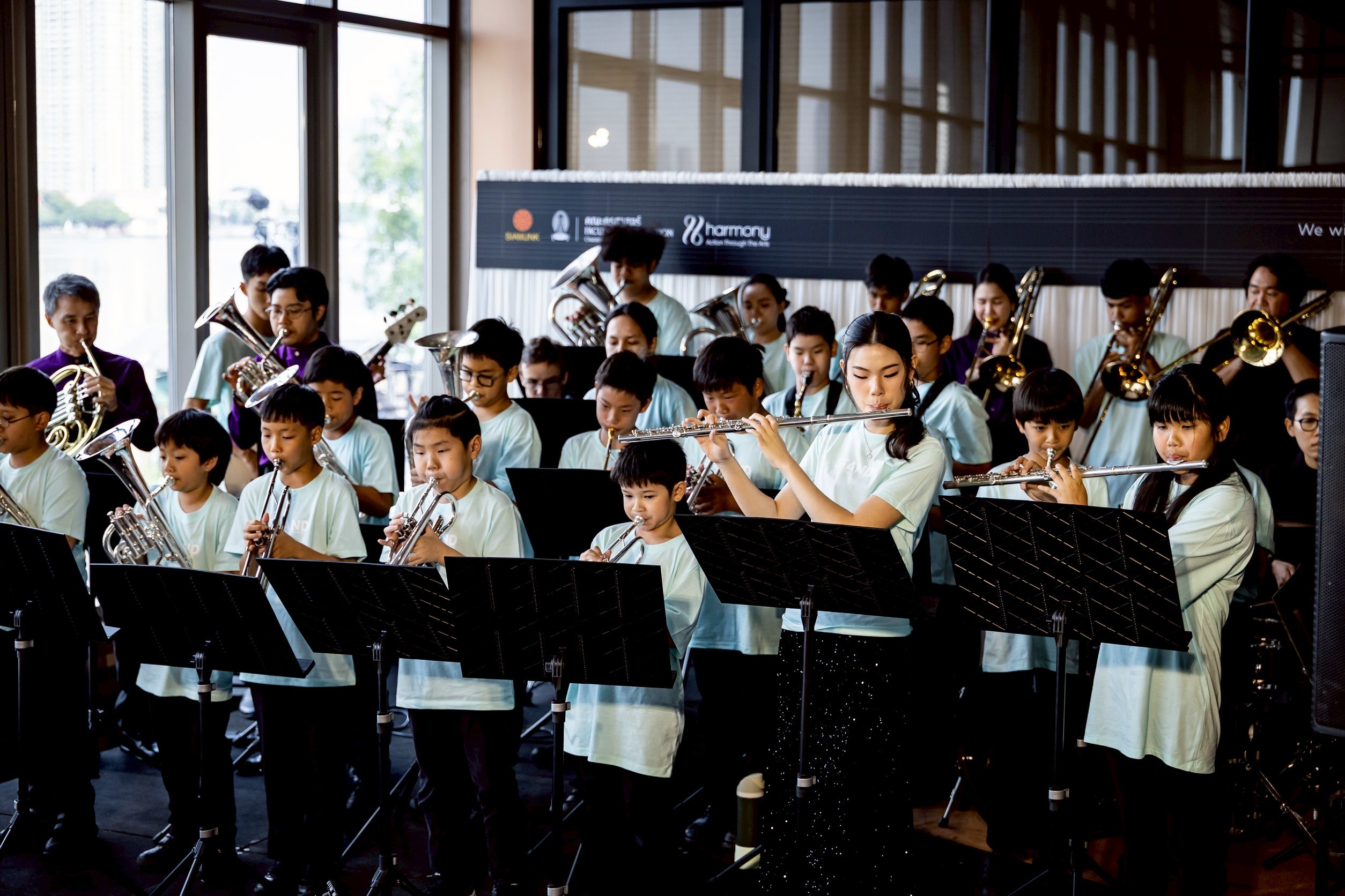 โดยการแสดงแบ่งออกเป็น 4 องก์หลัก ประกอบด้วย องก์ที่ 1 เพลงบรรเลงของ Thailand Brass Ensemble กลุ่มนักดนตรีเครื่องทองเหลือง 6 คนที่เคยสร้างความประทับใจมาแล้วทั่วประเทศ มาในบทเพลง Dance of Terpsichore โดย Michael Prætorius และ ‘Allegro con spirito’ จาก Sextet for Brass , Op 30 โดย Oscar Böhme ต่อด้วยองก์ที่ 2 การแสดงจากเยาวชน ภาคีของมูลนิธิดนตรีจากประเทศอังกฤษ ถ่ายทอดเสียงสะท้อน Musical จากภาพยนตร์ทำเงินฮอลลิวูด อย่าง ‘Danger Zone’ จาก Top Gun และ ‘Ghostbusters’ จาก ภาพยนตร์ในชื่อเดียวกัน ต่อด้วยองก์ที่ 3 การแสดงจากเยาวชนกลุ่มเครื่องดนตรีไทยร่วมสมัยที่สร้างความคึกคักให้บ่ายคล้อยวันนั้น ด้วยบทเพลงเกี่ยวข้าว, ค้างคาวกินกล้วย และตารีกีปัส เพลงจังหวะสนุกจาก มาเลเซียด้วยเสียงดนตรีระนาดเอก ขิมและการส่งจังหวะออกรสของกลองแขกไทย ต่อด้วยองก์ที่ 4 การแสดงจากคณะนักร้องประสานเสียง Bangkok Consort Singers ที่มีวาทยกรอย่าง ภาธร สวัสดิสุข ที่เปิดพื้นที่ให้คณะนักประสานเสียงจากหลากหลายอาชีพ ได้ร่วมใช้เวทีเพื่อสะท้อนการเข้าถึงความสุขที่สามารถจับต้องได้ด้วยเสียงเพลง ปิดท้ายด้วยการแสดงร่วมของเหล่านักแสดงทั้ง 4 องก์ในเพลงประวัติศาสตร์ STAND อย่างตื่นตาตื่นใจ