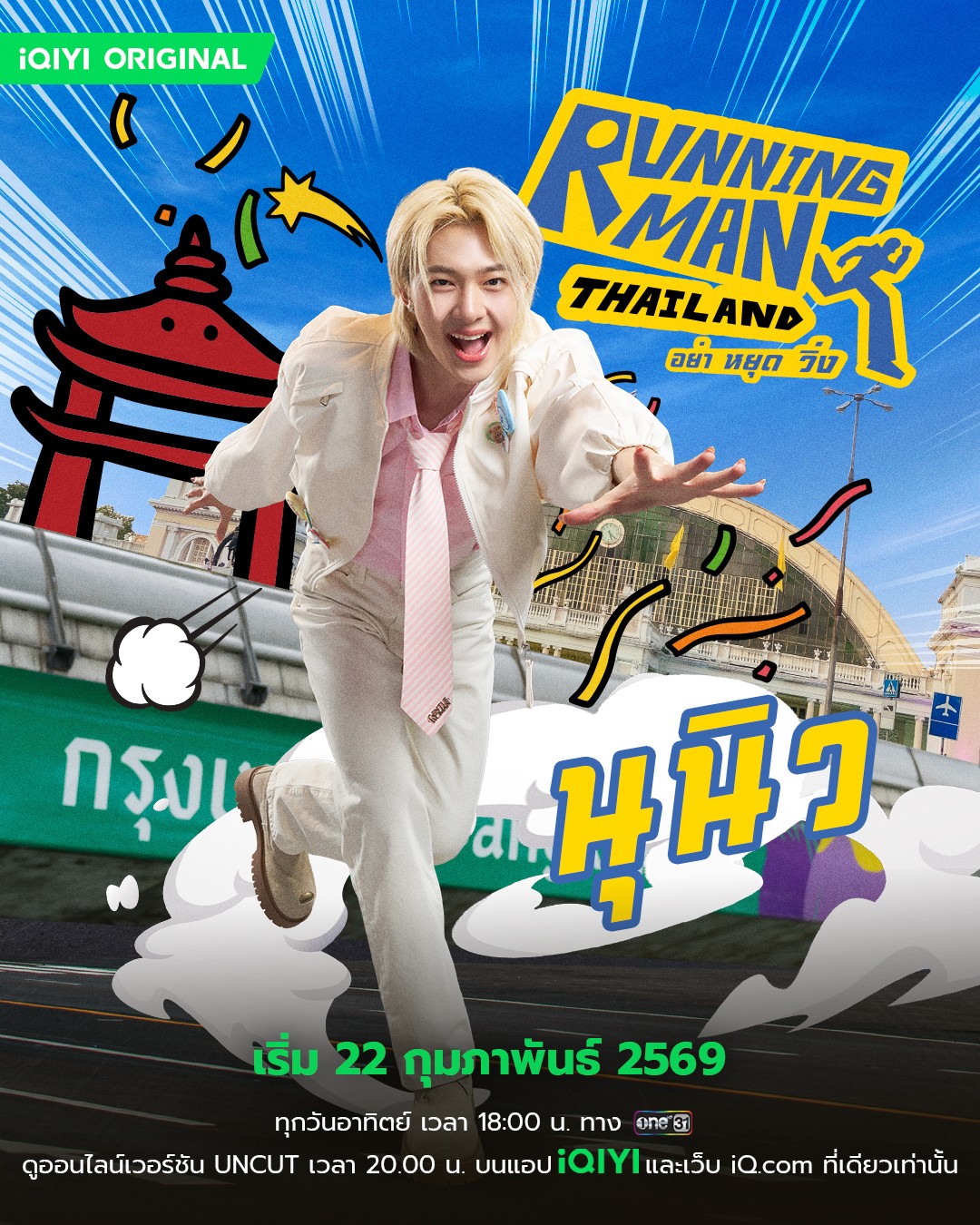iQIYI Original “Running Man Thailand อย่า หยุด วิ่ง” ออกอากาศ ทุกวันอาทิตย์ เวลา 18.00 น. ทางช่อง One31 และ รับชมออนไลน์เวอร์ชัน UNCUT แบบเต็มอิ่ม 20.00 น. เวลาประเทศไทยได้มากกว่า 190 พื้นที่ทั่วโลกบนแอป iQIYI และเว็บ iQ.com ที่เดียวเท่านั้น!! เริ่มออกอากาศตอนแรก 22 กุมภาพันธ์นี้