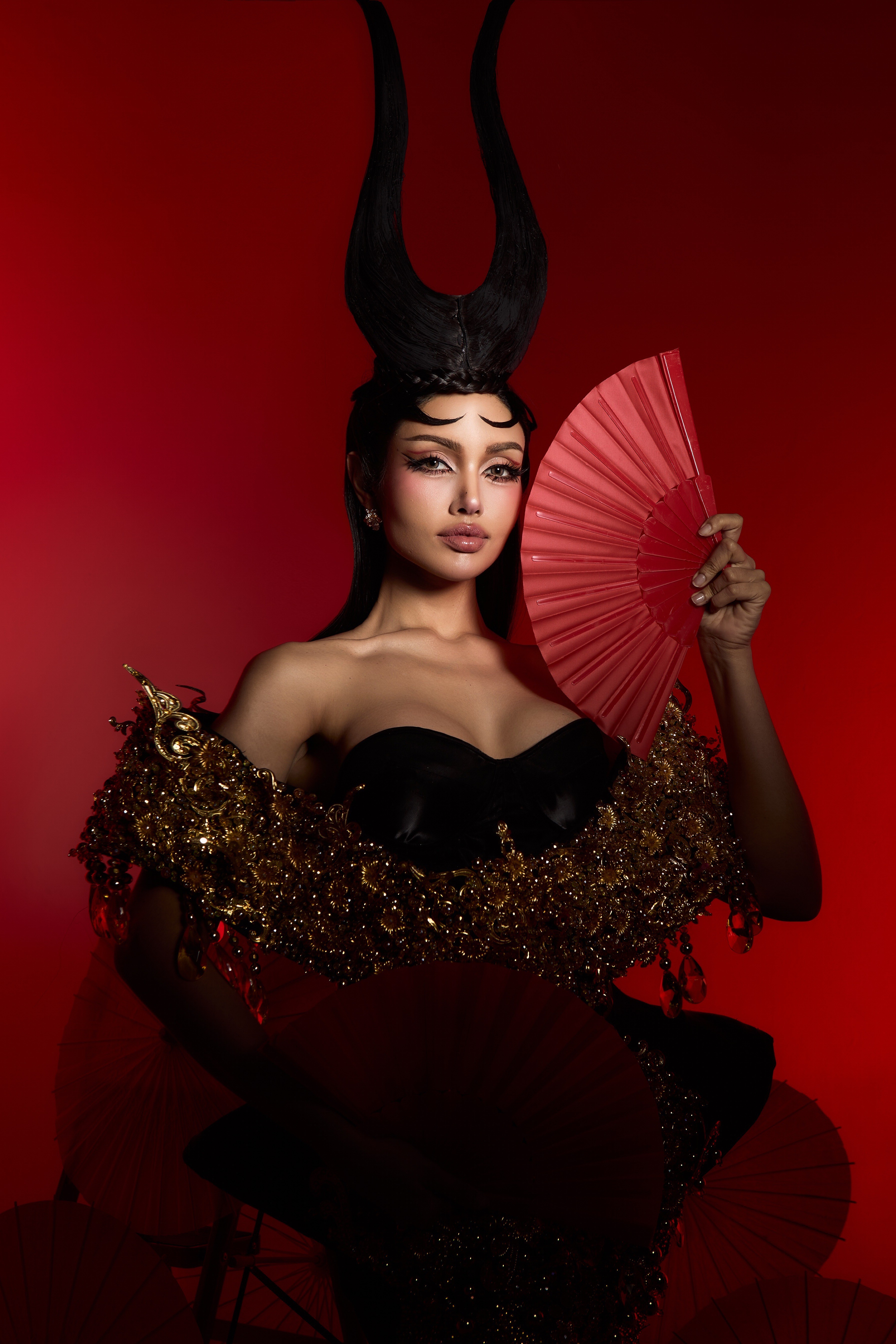 LOOK GOLD (ความมั่งคั่ง): ปิดท้ายด้วยลุคสีทองที่ได้รับแรงบันดาลใจจากเทพเจ้าจีน ทรงพลัง สง่างาม และลึกลับ สื่อถึงความสำเร็จที่เป็นอมตะ