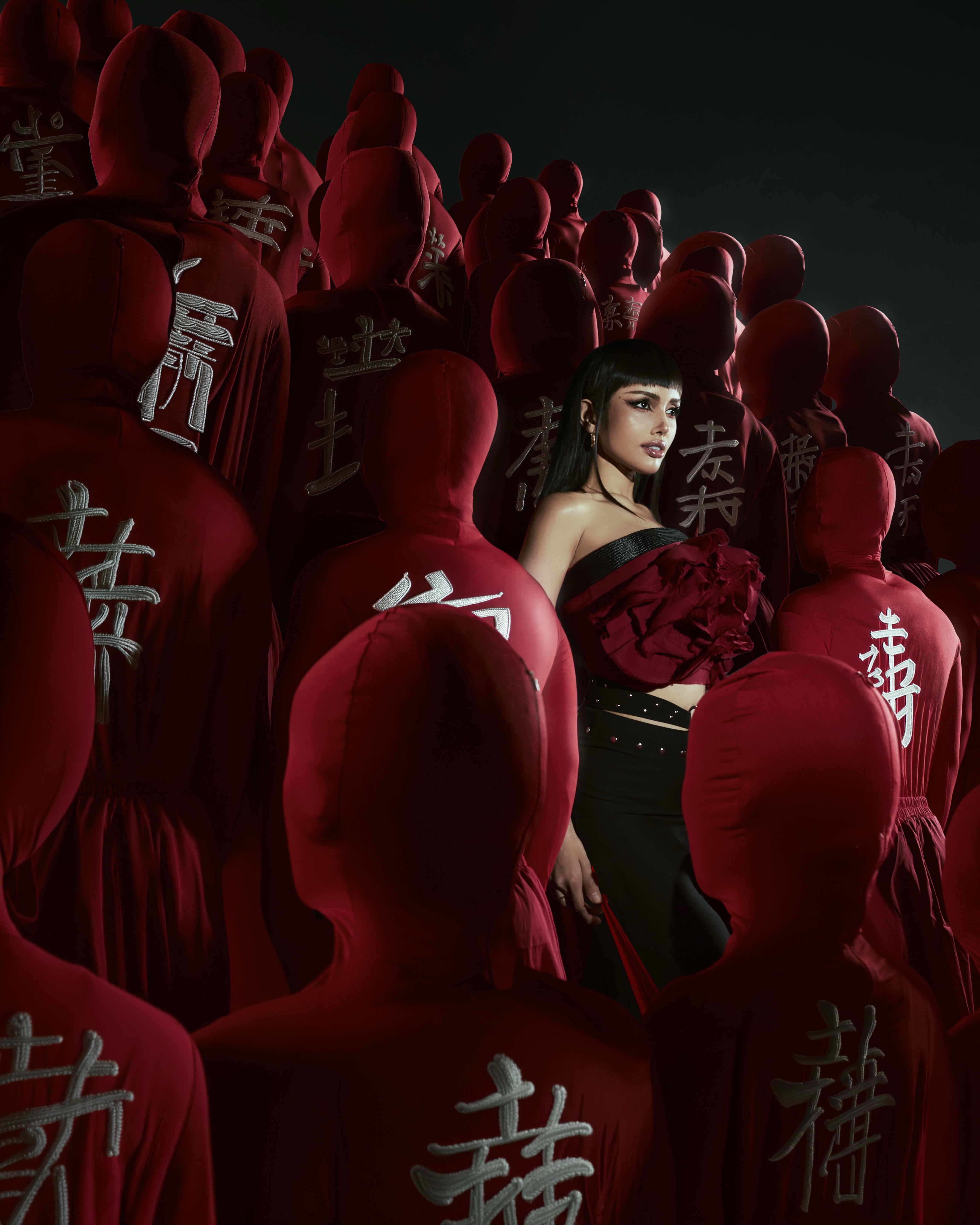 LOOK RED (อำนาจและความกล้า): ลุคสีแดงจัดจ้านที่ใช้ “ร่างกาย” เล่าเรื่องผ่านแรงผลักดันของกลุ่มคนรอบข้าง สื่อถึงการสนับสนุนและการประกาศความปังว่าปีนี้ต้อง “รวยและเฮง”