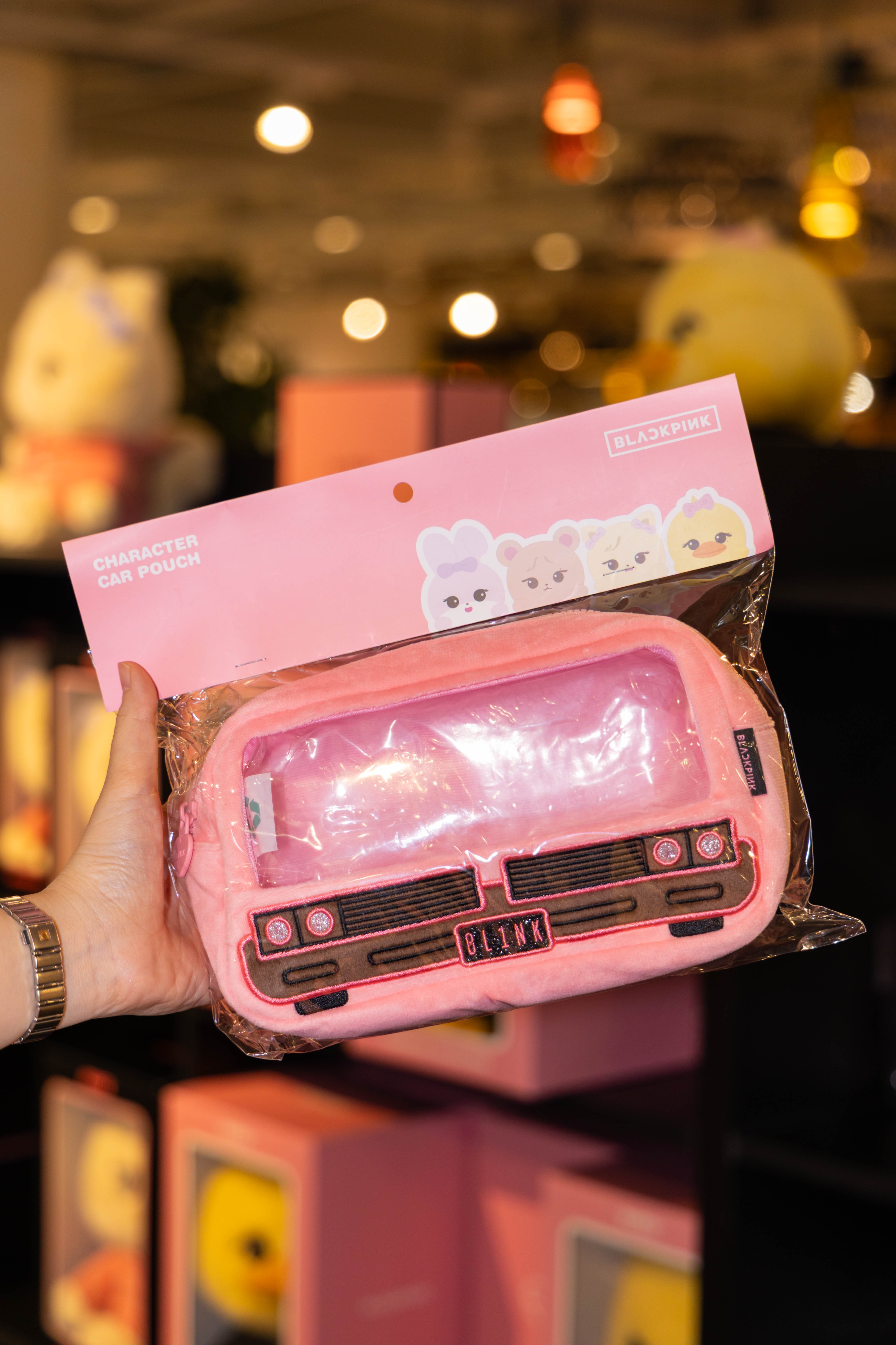 รวมถึงพวงกุญแจ PLUSH KEYRING ดีไซน์ขายาว และ PLUSH KEYRING ทรงสลิม, CAR POUCH กระเป๋าใส่ของสีชมพูทรงรถ, ที่คาดผม BLACKPINK CHARACTER HEADBAND ดีไซน์น่ารักสะดุดตา, เข็มกลัด FACE MINI BADGE, CARD HOLDER