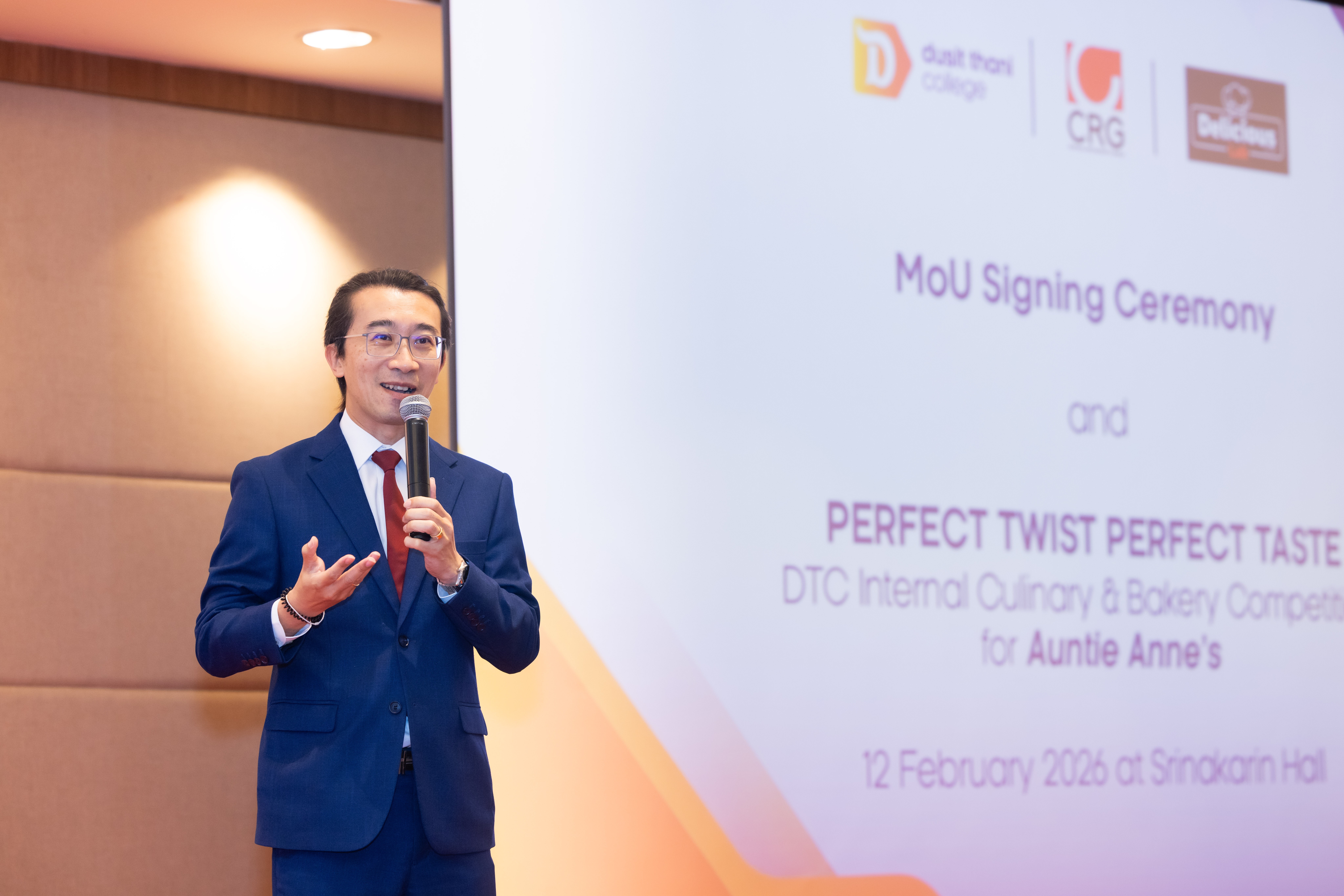 “วิทยาลัยดุสิตธานีเชื่อมั่นว่าความร่วมมือกับ ซีอาร์จี เป็นกลไกสำคัญในการยกระดับคุณภาพการเรียนการสอนให้สอดคล้องกับความต้องการของอุตสาหกรรมจริง นับเป็นก้าวสำคัญในการพัฒนาศักยภาพนักศึกษาให้พร้อมสู่การทำงานในอุตสาหกรรมอาหารระดับสากล ความร่วมมือครั้งนี้สะท้อนการบูรณาการการศึกษาเข้ากับภาคธุรกิจอย่างชัดเจน เปิดโอกาสให้นักศึกษาได้เรียนรู้จากสถานการณ์จริง และร่วมกันสร้างมาตรฐานวิชาชีพที่เข้มแข็ง”