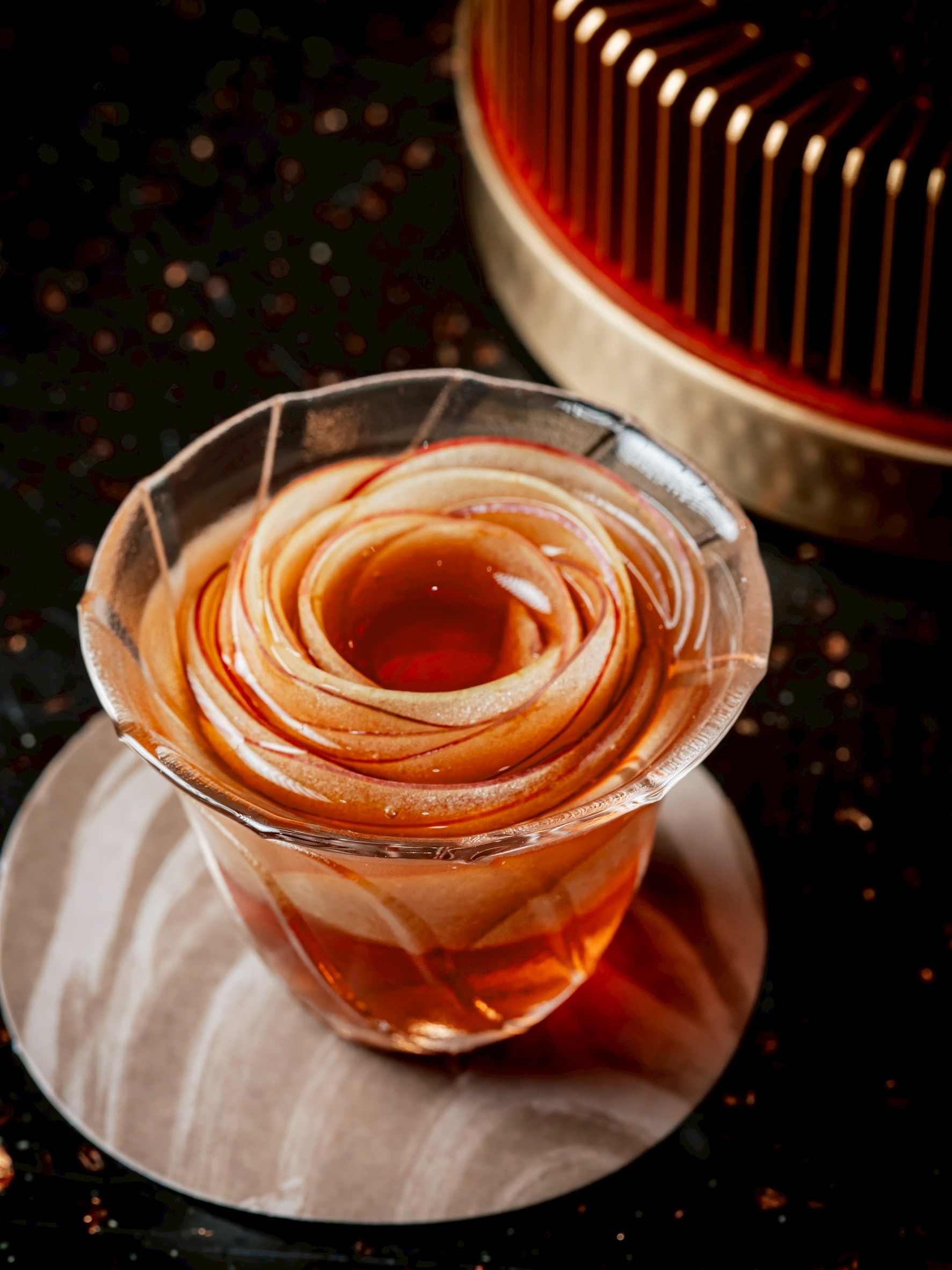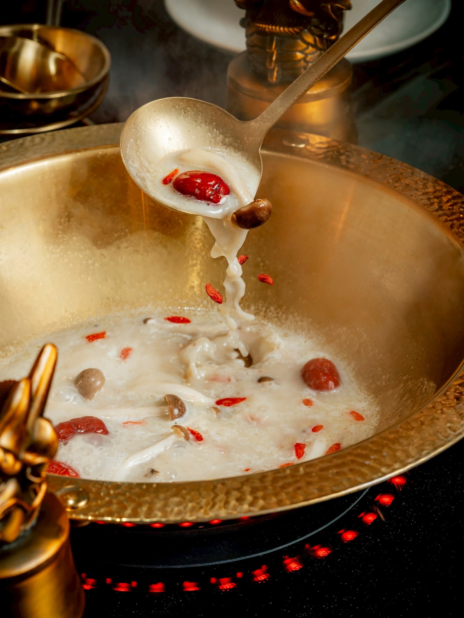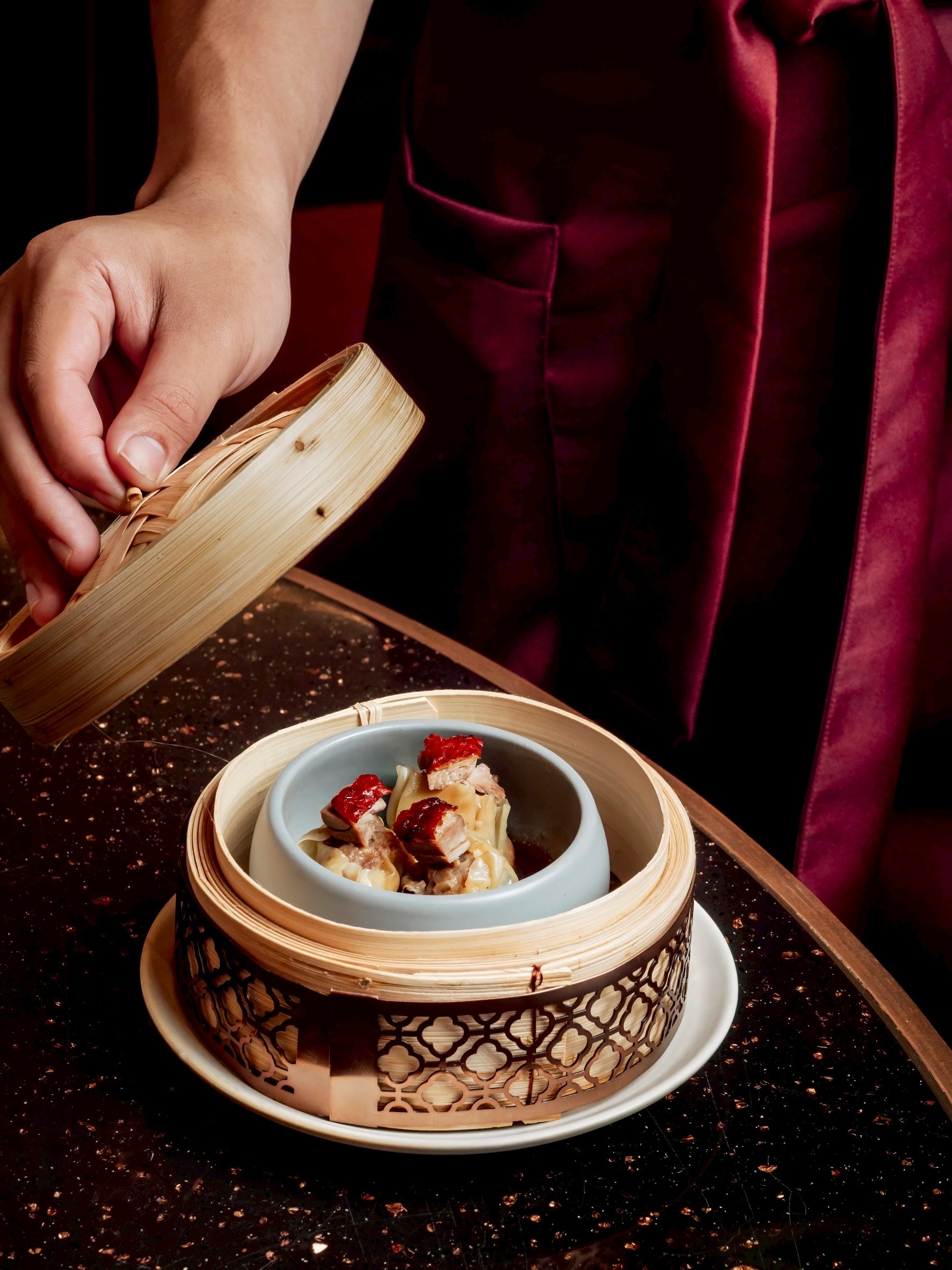 ด้านการออกแบบภายในร้านสะท้อนตำนานและความประณีตของแบรนด์ผ่านโทนสีทองและแดงที่สื่อถึงความพรีเมียม จุดเด่นกลางร้านเป็น Modern Art Installation ที่ได้แรงบันดาลใจจากเส้นบะหมี่หยก ผสมผสานกับลวดลายของทิวเขาบนผนัง เพดานออกแบบโค้งมนคล้ายเมฆบนท้องฟ้า