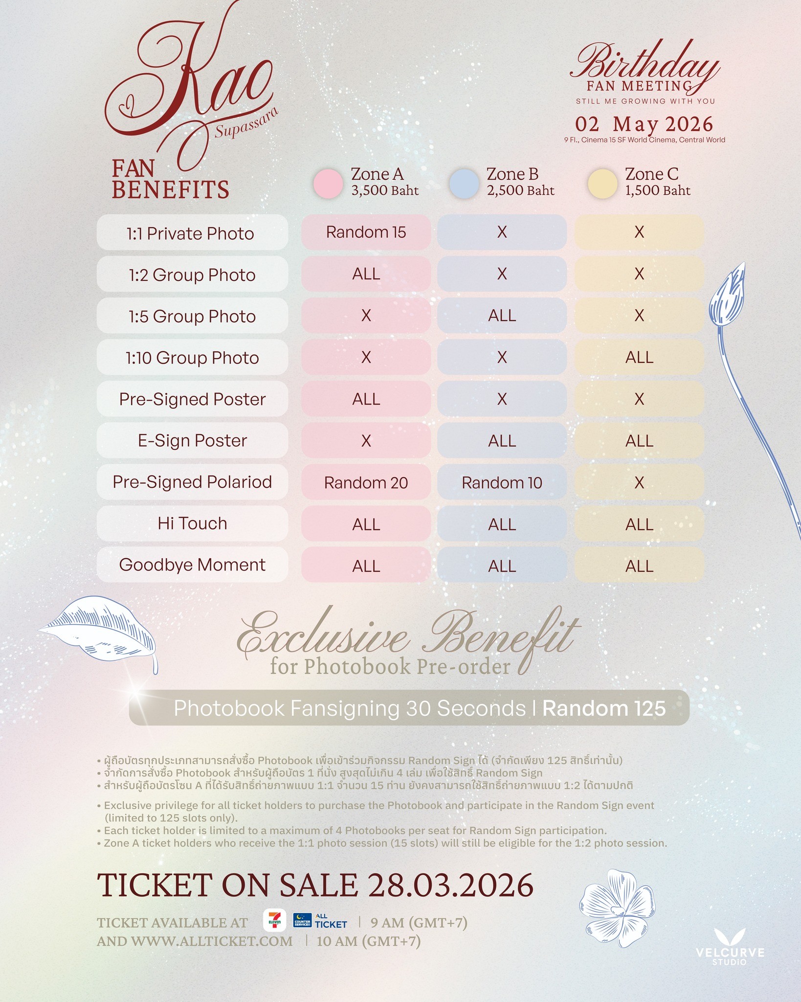เตรียมพบกับโมเมนต์สุดพิเศษที่แฟนคลับรอคอย ของนักแสดงมากความสามารถ “เก้า สุภัสสรา ธนชาต” ประกาศจัดงานแฟนมีตติ้ง ฉลองวันเกิดในปี 2026 ภายใต้ชื่องาน “Kao Supassara Birthday Fanmeeting 2026” ที่มาในคอนเซ็ปต์ “Still Me Growing With You” เพื่อแทนคำขอบคุณแฟนๆที่สนับสนุนกันมาอย่างยาวนาน ในวันเสาร์ที่ 2 พฤษภาคม 2569 ณ SF World Cinema, Central World ชั้น 9 (โรงภาพยนตร์ ที่ 15)