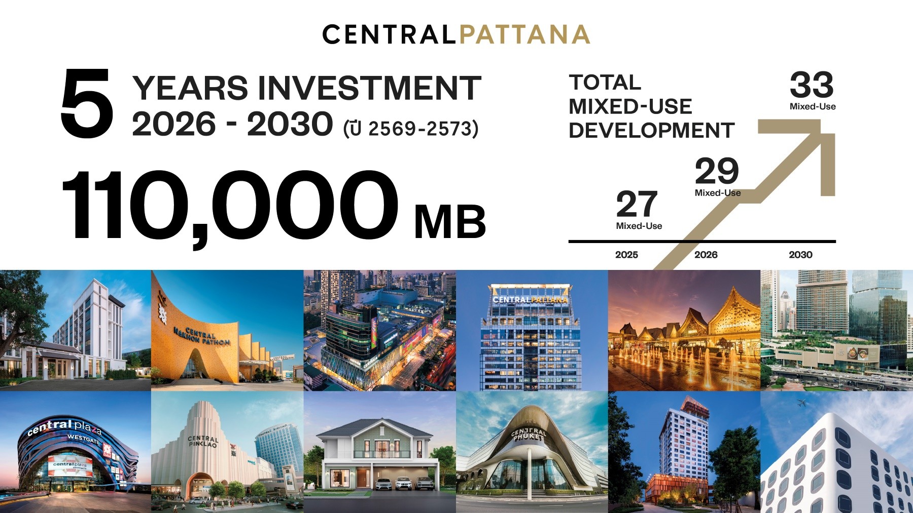 นางสาววัลยา จิราธิวัฒน์ กรรมการผู้จัดการใหญ่และประธานเจ้าหน้าที่บริหาร มบจ.เซ็นทรัลพัฒนา กล่าวว่า “เซ็นทรัลพัฒนา ภูมิใจที่การพัฒนาโครงการต่างๆ ของเราได้มีส่วนสร้างย่าน สร้างเมือง สร้างประเทศ ภายใต้การบุกเบิกโมเดลธุรกิจ Retail-Led Mixed-Use Development ที่ได้ประกาศไว้ประสบความสำเร็จอย่างชัดเจนตลอด 45 ปี โดยมีโครงการรวมทั้งสิ้น 142 โครงการ ประกอบด้วย 45 ศูนย์การค้า, 16 คอมมูนิตี้มอลล์, 11 อาคารสำนักงาน, 17 โรงแรม และ 53 โครงการที่อยู่อาศัย ครอบคลุมทุกมิติของการใช้ชีวิต โดยเรายังคงเดินหน้าลงทุนอย่างต่อเนื่องตามแผน 5 ปี มูลค่า 110,000 ล้านบาท (ปี 2569–2573) และคาดว่าจะมีโครงการมิกซ์ยูสเพิ่มขึ้นเป็น 33 โครงการภายในปี 2573 โดยบริษัทฯ ยังคงมุ่งเน้นการพัฒนาเพื่อความยั่งยืน ทั้งได้มีส่วนสร้างงานและกระจายรายได้ตั้งแต่ต้นน้ำจนถึงปลายน้ำรวมกว่า 1.5 ล้านตำแหน่ง และเดินหน้าสู่ Net Zero 2050 ตามแผนที่ได้ประกาศไว้”