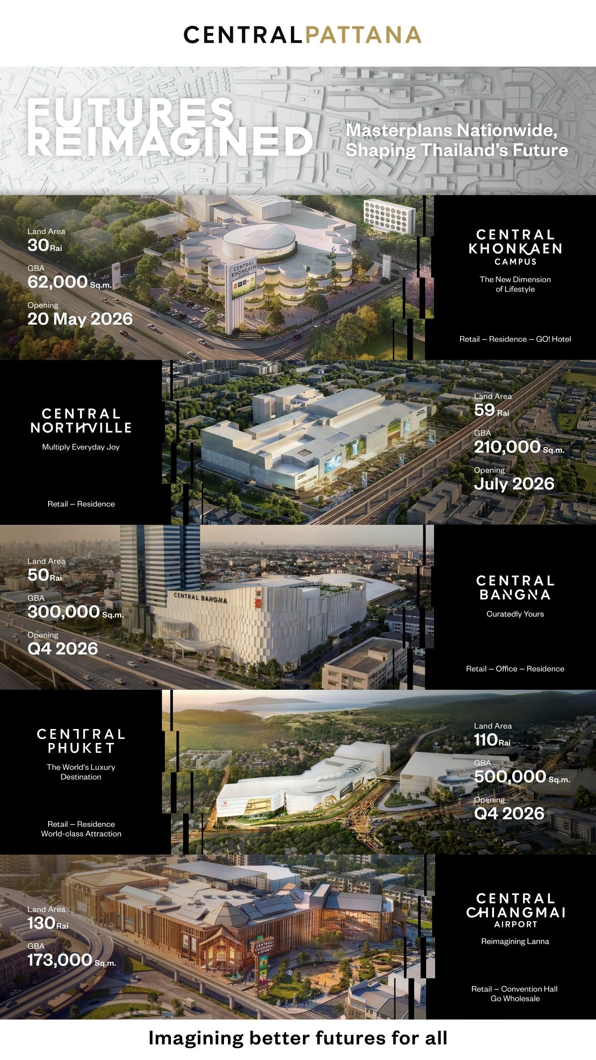 Bangkok – Central Pattana Plc., Thailand’s leading real estate developer for sustainability, reaffirmed the success of its retail-led mixed-use development model, which continues to drive impact across all dimensions nationwide. At its 2026 annual press conference, the company unveiled its vision of a “Future-Led Ecosystem,” alongside landmark masterplans for mega-scale projects in Bangkok, Chiang Mai, Phuket and Khon Kaen. Central Pattana also outlined its continued ambition to elevate Bangkok and Thailand onto the global stage, supported by further expansion across its real estate portfolio, including offices, hotels and residential developments, all demonstrating sustained growth.