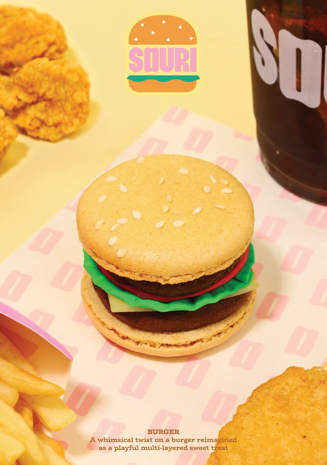 ครั้งนี้ SOURI ท้าทายทุกความคุ้นเคยของแฟนขนมหวาน ด้วยการตีความแฟตการองในมิติที่คาดไม่ถึง เปลี่ยนเมนูของหวานสุดไอคอนิกให้กลายเป็นศิลปะการลวงตาที่ทั้งน่ารักและน่ากิน ด้วยดีไซน์ที่ถอดรายละเอียดของแฮมเบอร์เกอร์มาอย่างพิถีพิถัน ตั้งแต่ส่วนของขนมปังด้านบนที่ให้สัมผัสนุ่มละมุน ไปจนถึงเลเยอร์ไส้ที่จัดวางอย่างมีมิติ เรียกได้ว่าทุกองค์ประกอบถูกสร้างสรรค์ขึ้นให้หลอกตาด้วยรูปลักษณ์ และดึงดูดใจด้วยรสชาติ เพื่อยกระดับประสบการณ์ขนมหวานให้กลายเป็นโมเมนต์ที่ทั้งสนุกและน่าจดจำ