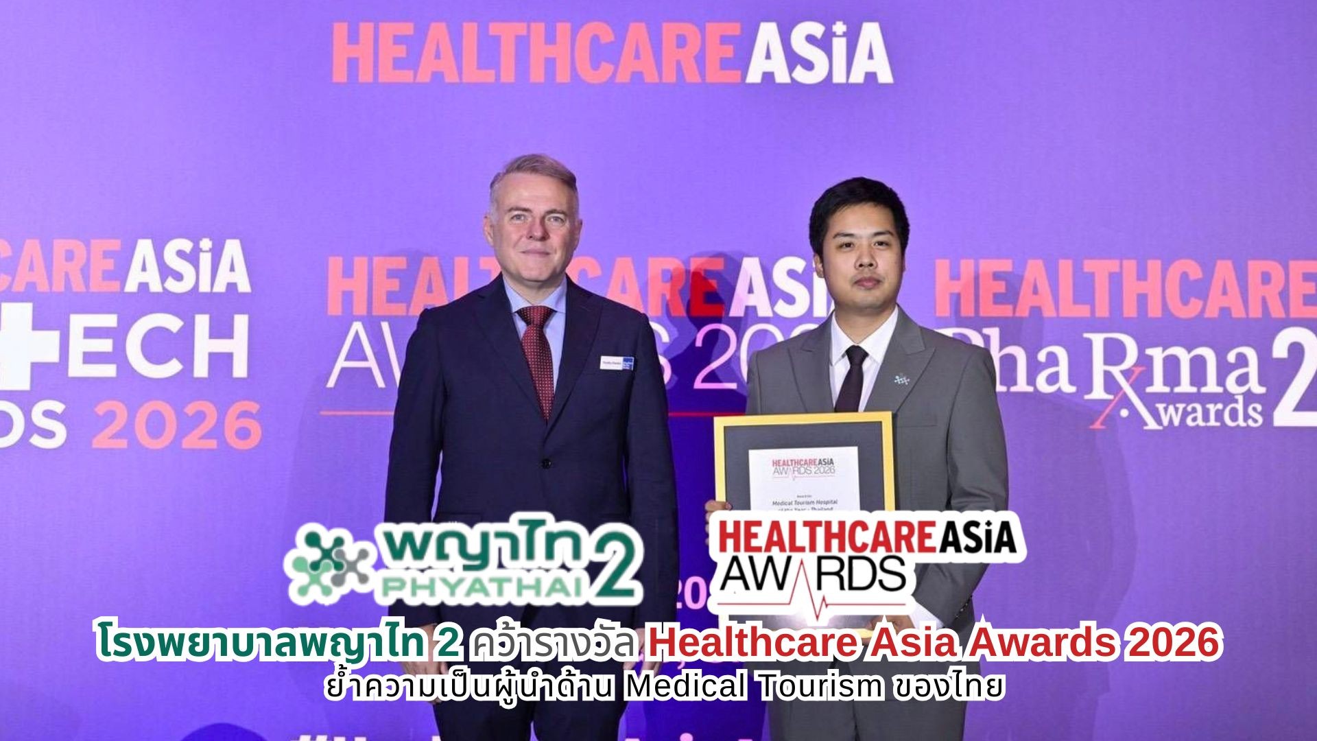 โรงพยาบาลพญาไท 2 ภายใต้เครือโรงพยาบาลพญาไท-เปาโลรับรางวัล Medical Tourism Hospital of the Year - Thailand จากงาน “Healthcare Asia Awards 2026” จัดโดยนิตยสารเฮลท์แคร์ เอเชีย (HEALTHCARE ASiA) ภายใต้เครือชาร์ลตัน มีเดีย กรุ๊ป (Charlton Media Group) ซึ่งเป็นรางวัลระดับภูมิภาคเอเชียที่ยกย่องและมอบให้แก่องค์กรทางด้านสุขภาพที่มีผลงานอันโดดเด่นในแต่ละประเทศ โดยจัดไปเมื่อวันที่ 26 มีนาคม 2569 ที่ผ่านมา ณ ศูนย์การประชุมแซนด์ส เอ็กซ์โป แอนด์ คอนเวนชัน เซ็นเตอร์ (Sands Expo & Covention Centre) ย่านมารีน่าเบย์ ประเทศสิงคโปร์