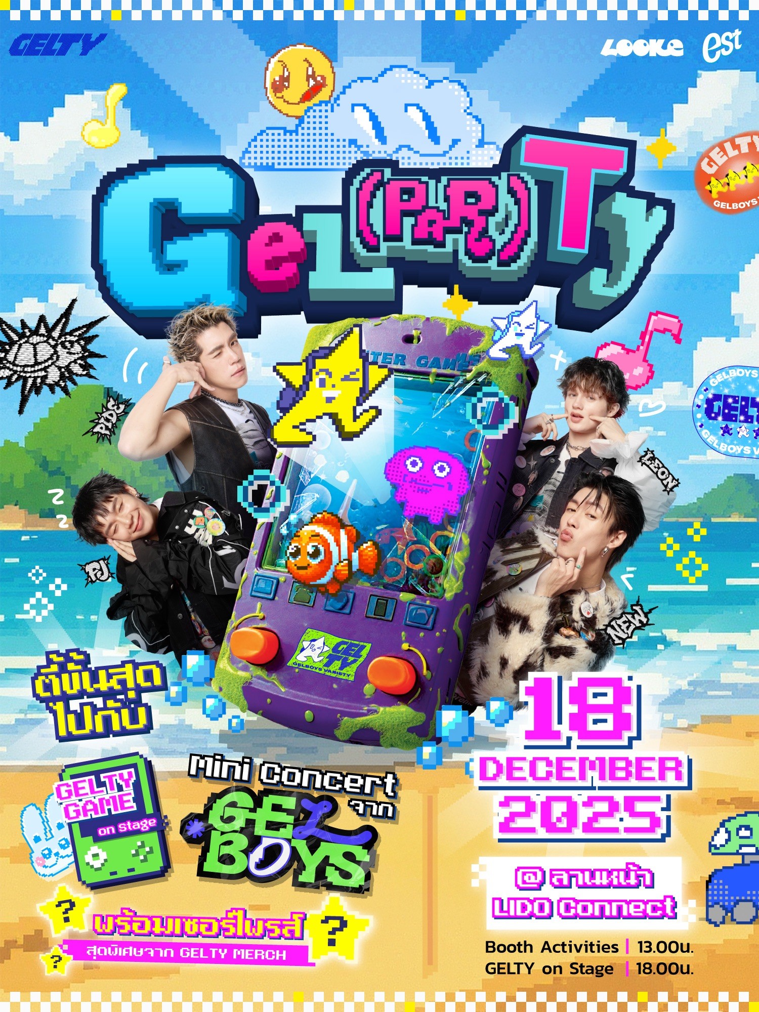 LOOKE ชวนแฟน ๆ รวมพลังส่งท้ายปี ในงาน “GEL(PAR)TY” ปาร์ตี้พิเศษที่จัดขึ้นเพื่อแทนคำขอบคุณจากหัวใจ ที่ร่วมเดินทางกับรายการ “GELTY (GELBOYS VARIETY)” มาตลอดทั้ง 8 EP. งานใหญ่ครั้งนี้ 4 หนุ่ม GELBOYS นิว ชยภัค ตันประยูร, ไป๊ป มนธภูมิ สุมนวรางกูร, พีเจ มหิดล พิบูลสงคราม และเลออน บรอคโค่ นำทีมสร้างสีสัน ชวนตี้แบบสุดมันส์ พร้อมมอบความบันเทิง ทั้งช้อป ทั้งโชค ทั้งโชว์แบบจัดเต็ม ณ ลานหน้า LIDO Connect วันที่ 18 ธันวาคมนี้