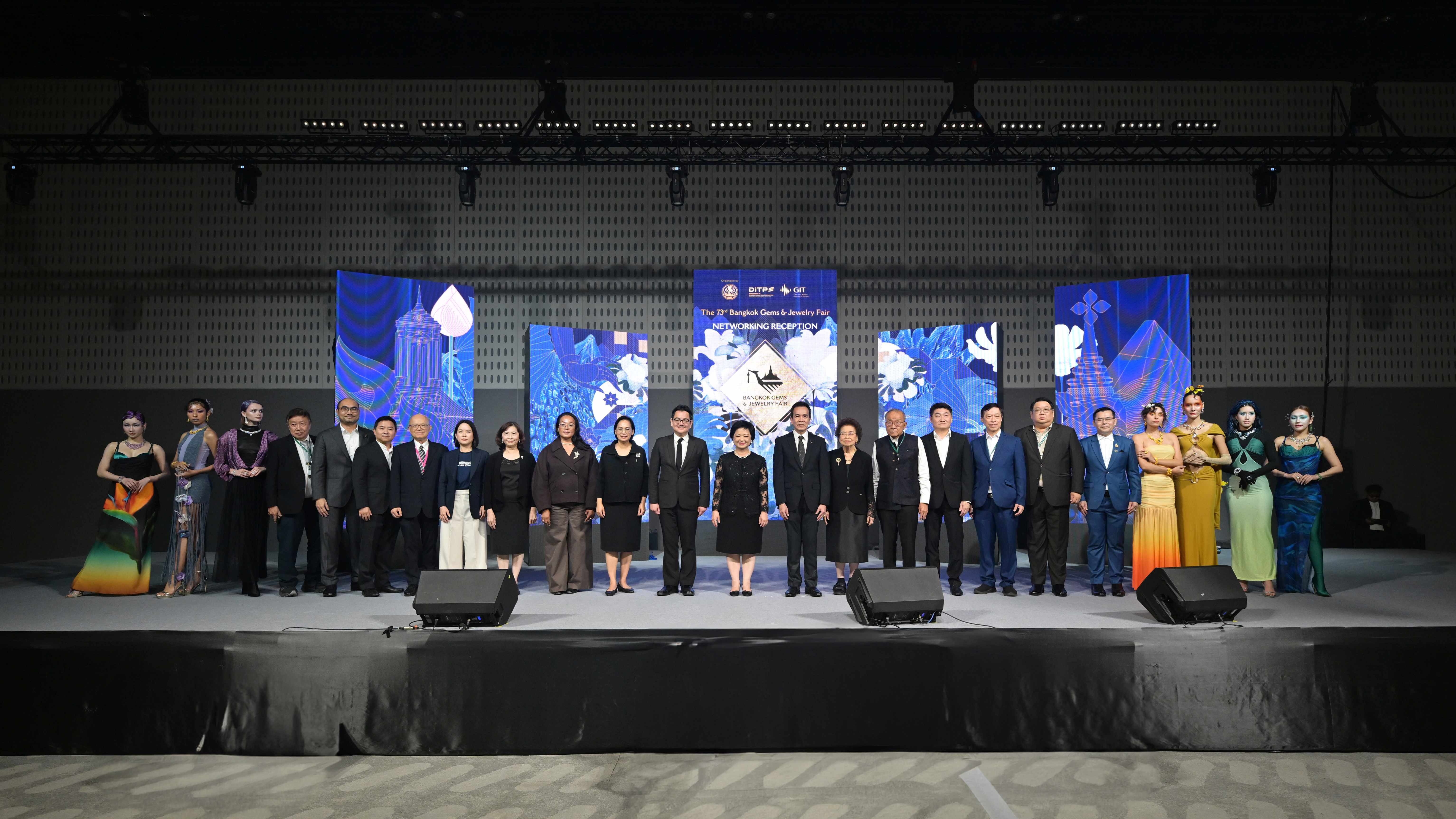 คุณสุนันทา กังวาลกุลกิจ อธิบดีกรม กรมส่งเสริมการค้าระหว่างประเทศ (DITP) กระทรวงพาณิชย์ พร้อมด้วย คุณสุเมธ ประสงค์พงษ์ชัย ผู้อำนวยการสถาบัน สถาบันวิจัยและพัฒนาอัญมณีและเครื่องประดับแห่งชาติ (GIT) ร่วมเป็นเจ้าภาพจัดกิจกรรม Networking Reception ภายในงานแสดงสินค้า “Bangkok Gems and Jewelry Fair” ครั้งที่ 73 เมื่อวันที่ 22 กุมภาพันธ์ 2569 ที่ผ่านมา ณ ห้องบอลรูม ศูนย์การประชุมแห่งชาติสิริกิติ์ โดยมีผู้ประกอบการ ผู้นำเข้า นักธุรกิจ และแขกผู้มีเกียรติจากทั้งในประเทศและต่างประเทศเข้าร่วมอย่างคับคั่ง